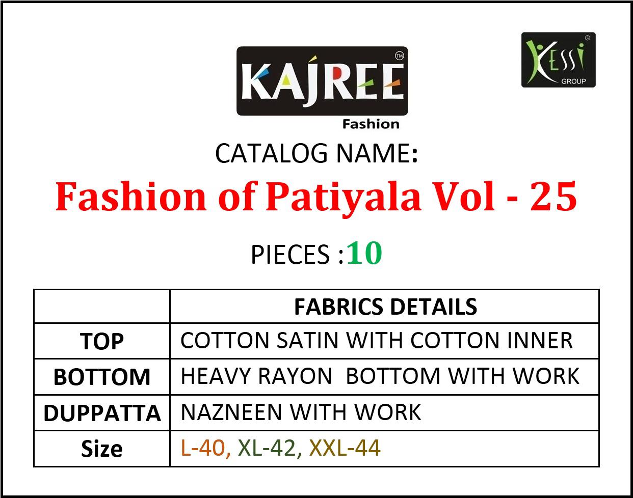 Buy Online Fashion Of Patiyala Vol 25 By Kajree Ready To Cotton Dress Wholesale Supplier Gujarat 10 Pcs of Full Catalogue at Wholesale Price. Looking for Fashion Of Patiyala Vol 25 By Kajree Ready To Cotton Dress Wholesale Supplier Gujarat Full Catalouge at Best Price? Buy Now Fashion Of Patiyala Vol 25 By Kajree Ready To Cotton Dress Wholesale Supplier Gujarat at Wholesale Rate of Rs 10490 with Total 10 Pcs from authroized dealer and supplier of Brand. Cost of Each piece is just only Rs 1049 which is very low and affordable price to resale the product in your retail store ,This is Surat based Wholesale Supplier & Dealer of Brand. Click on Brand name to Know more about Brand's products.Call or Whatsapp on 9898838984 for booking or enquiry