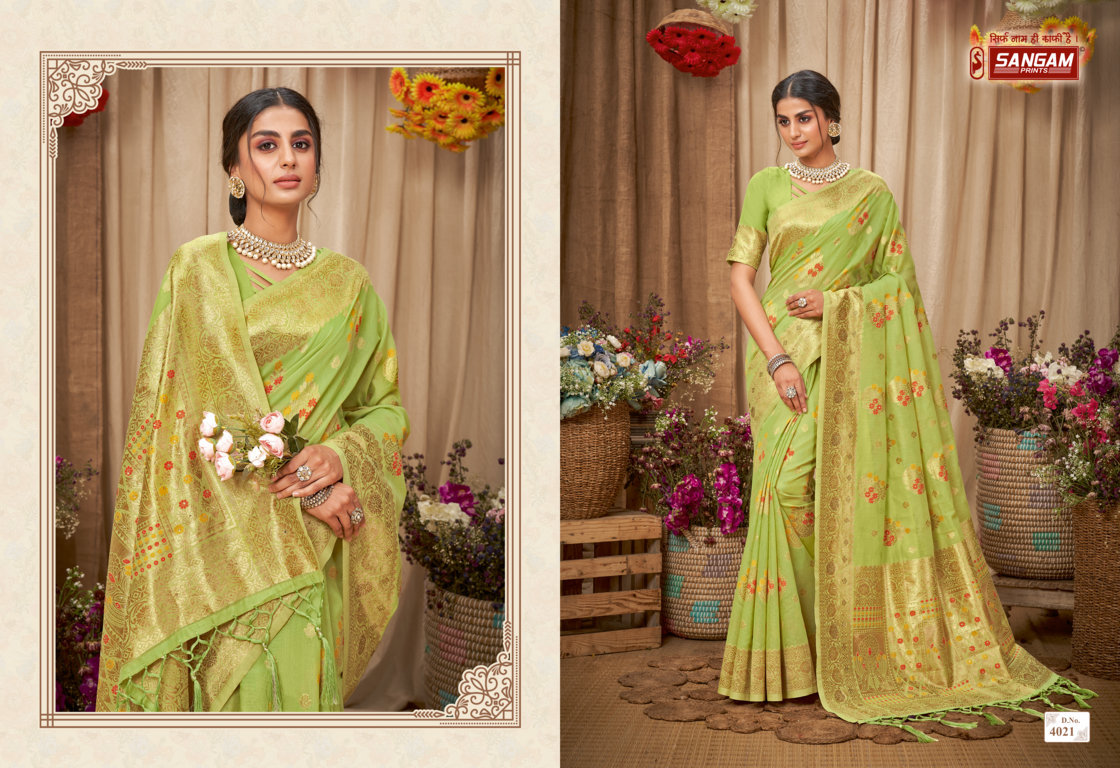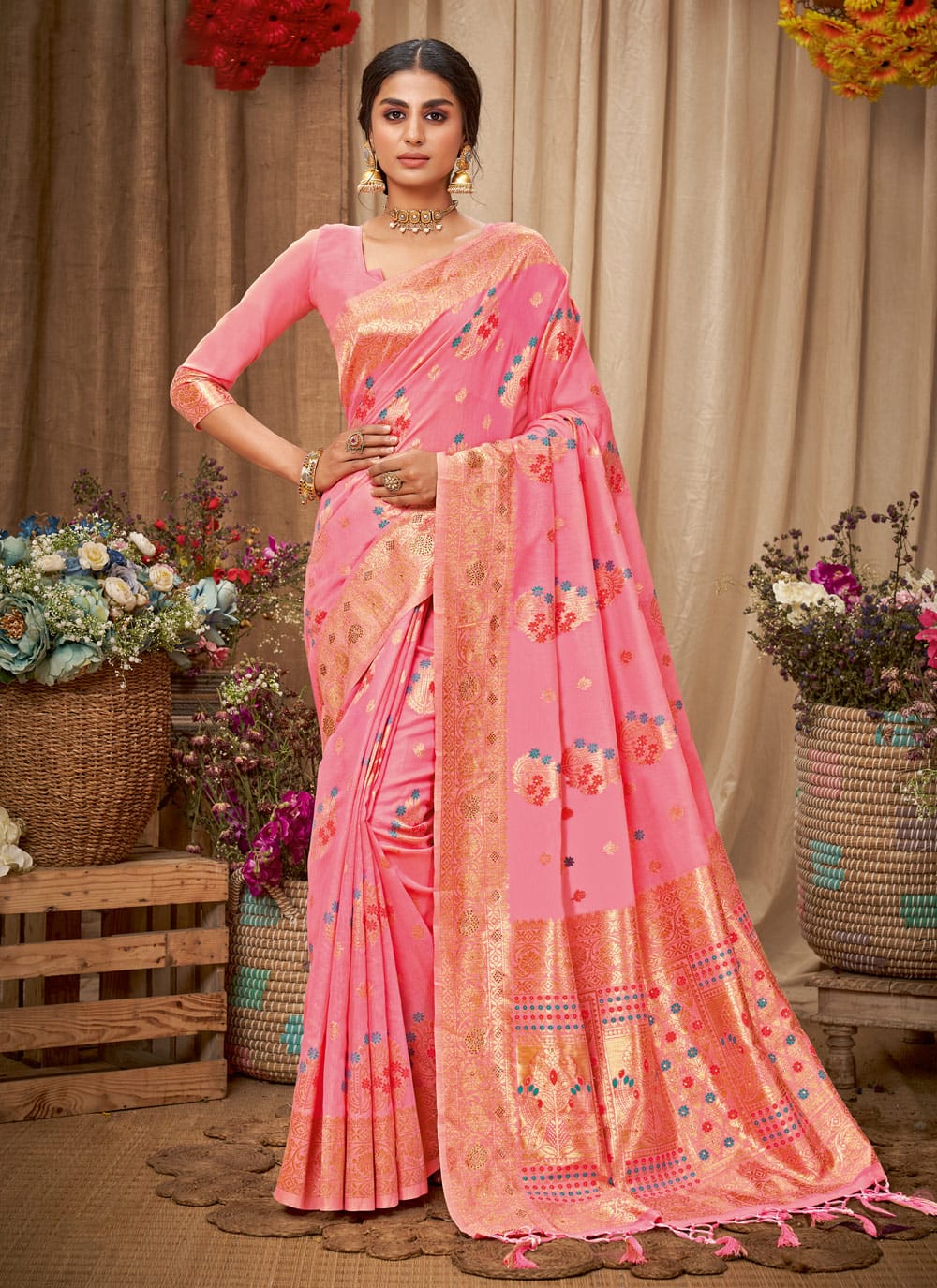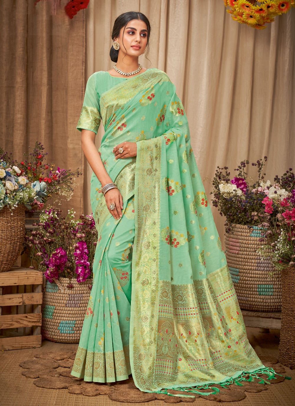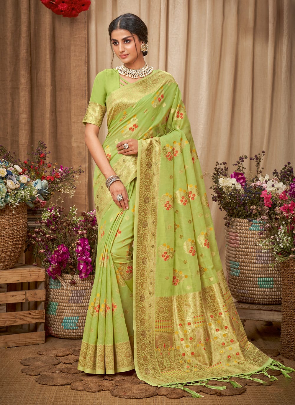 Catalog Name: *_Fashion Queen_* Brand: *_Sangam Prints_* Product Type: Saree Fabric: Cotton Price Per Piece: 1225/- Gst Extra: 5% Work: Zari Woven Work Other Specifications: Siroski Stone Work & Tassels Saree Mtr: 5.5 Mtr Blouse: 0.8 Mtr Total Pcs: 6 *_Book your orders now_* 100+single |
