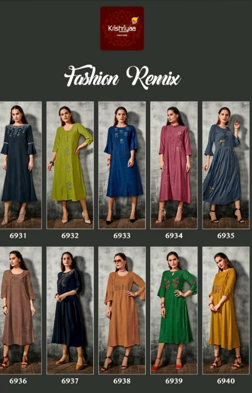 Buy Online Fashion Remix By Krishriyaa Fashions Viscous Slub Kurtis Wholesale Supplier India 10 Pcs of Full Catalogue at Wholesale Price. Looking for Fashion Remix By Krishriyaa Fashions Viscous Slub Kurtis Wholesale Supplier India Full Catalouge at Best Price? Buy Now Fashion Remix By Krishriyaa Fashions Viscous Slub Kurtis Wholesale Supplier India at Wholesale Rate of Rs 7200 with Total 10 Pcs from authroized dealer and supplier of KRISHRYAA Brand. Cost of Each piece is just only Rs 720 which is very low and affordable price to resale the product in your retail store ,This is Surat based Wholesale Supplier & Dealer of KRISHRYAA Brand. Click on Brand name to Know more about KRISHRYAA Brand's products.Call or Whatsapp on 9898838984 for booking or enquiry