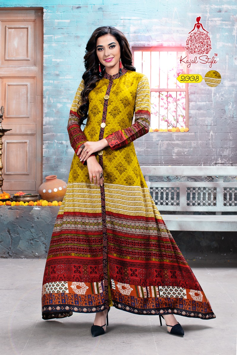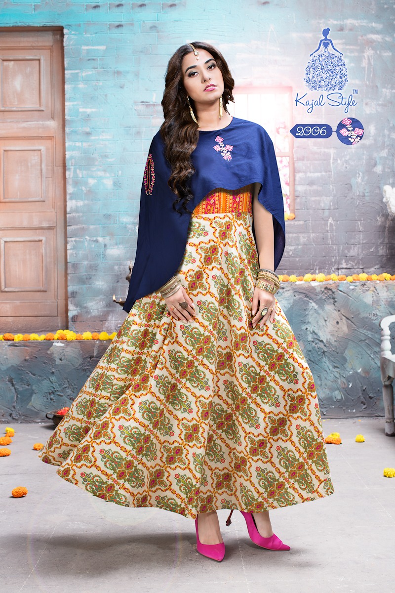 Buy Online Fashion Season?s Vol 2 By Kajal Style 2001 Series Designer Gown Style Kurti Catlog Wholesale Dealer And Supplier Surat 8 Pcs of Full Catalogue at Wholesale Price. Looking for Fashion Season?s Vol 2 By Kajal Style 2001 Series Designer Gown Style Kurti Catlog Wholesale Dealer And Supplier Surat Full Catalouge at Best Price? Buy Now Fashion Season?s Vol 2 By Kajal Style 2001 Series Designer Gown Style Kurti Catlog Wholesale Dealer And Supplier Surat at Wholesale Rate of Rs 4640 with Total 8 Pcs from authroized dealer and supplier of KAJAL STYLE Brand. Cost of Each piece is just only Rs 580 which is very low and affordable price to resale the product in your retail store ,This is Surat based Wholesale Supplier & Dealer of KAJAL STYLE Brand. Click on Brand name to Know more about KAJAL STYLE Brand's products.Call or Whatsapp on 9898838984 for booking or enquiry