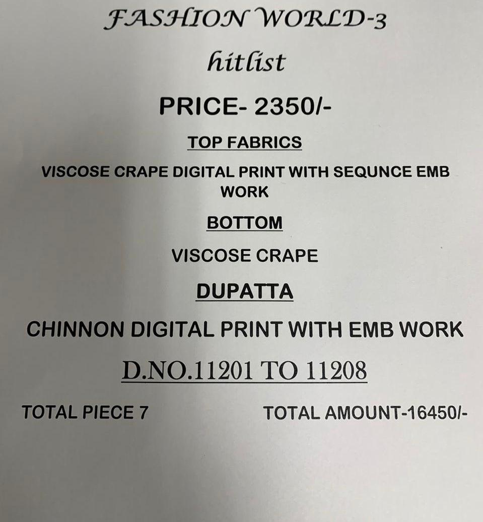 Brand - Vivek Fashion x Catlog name -FASHION WORLD-3. Set to set. GST 5 Percent Extra. Delivery from today |