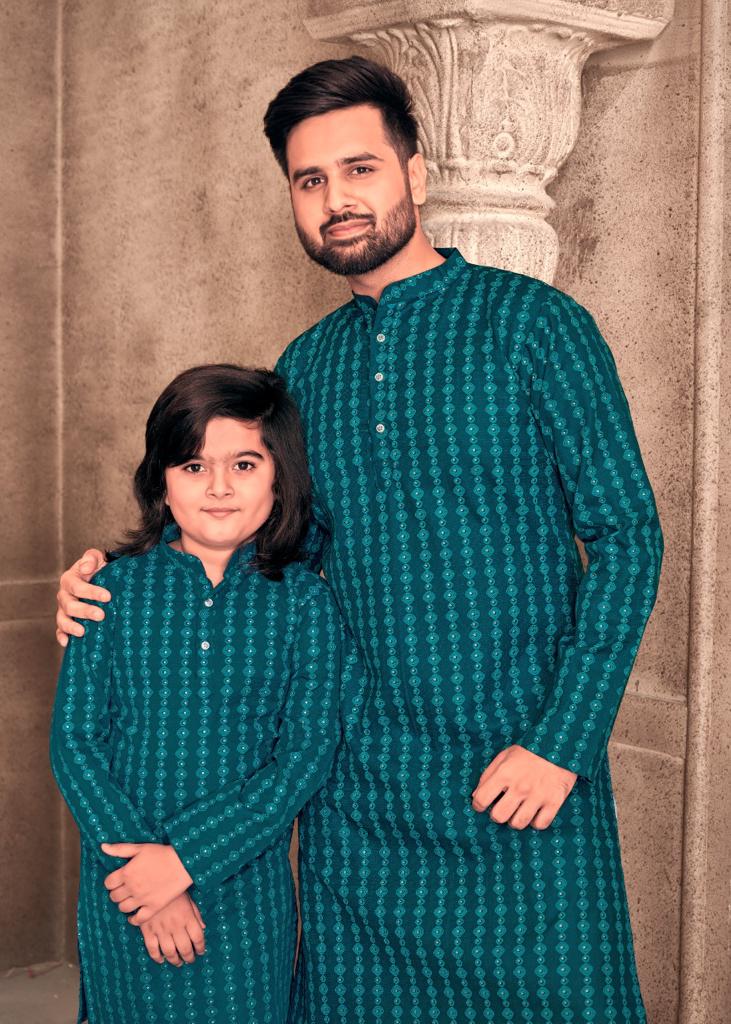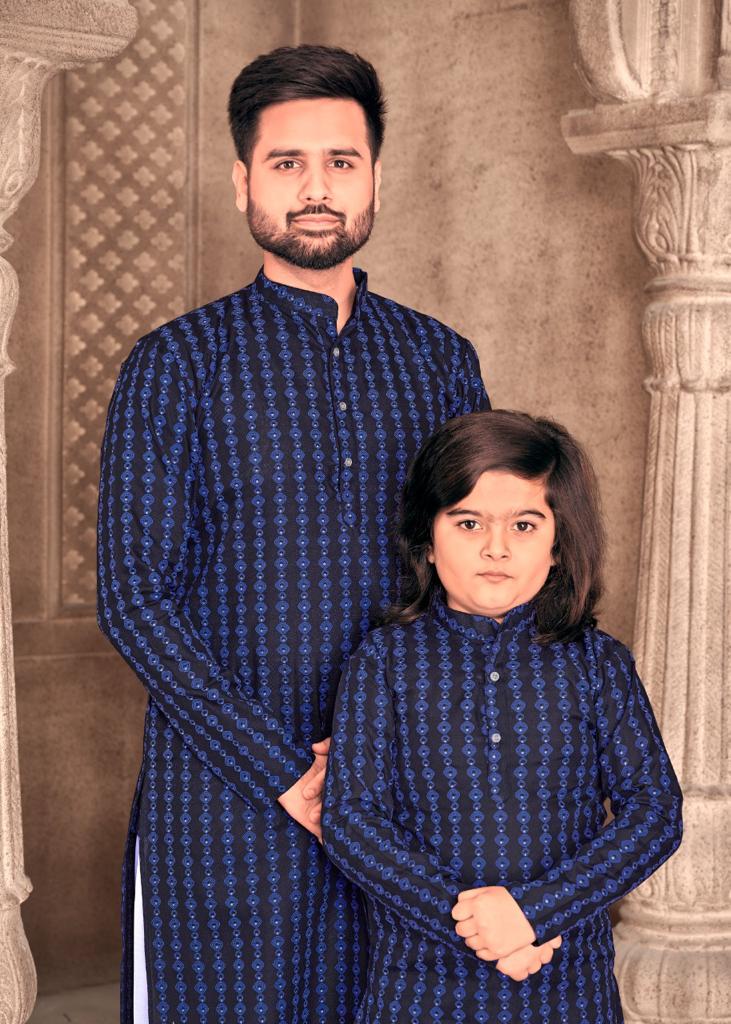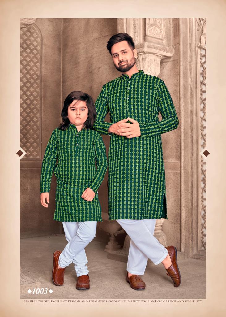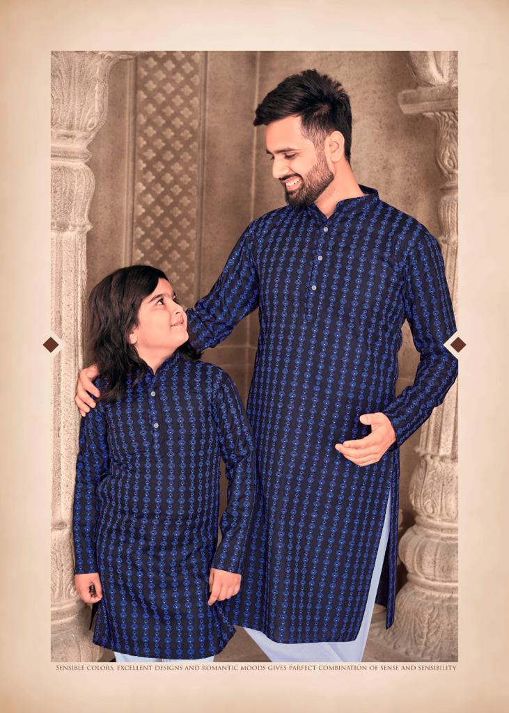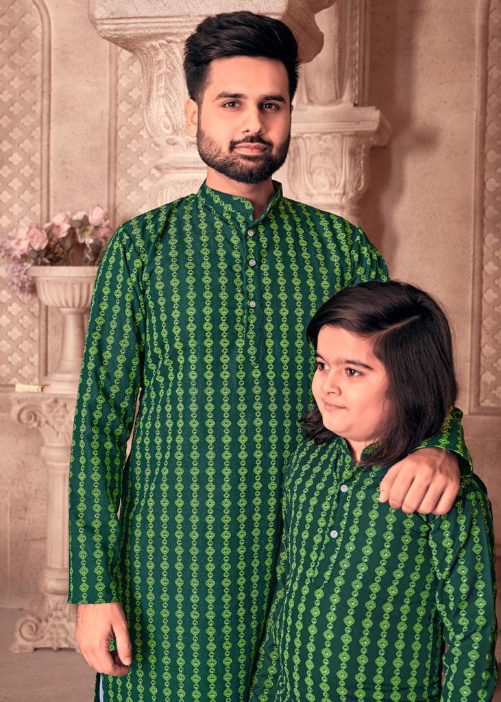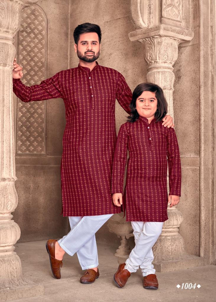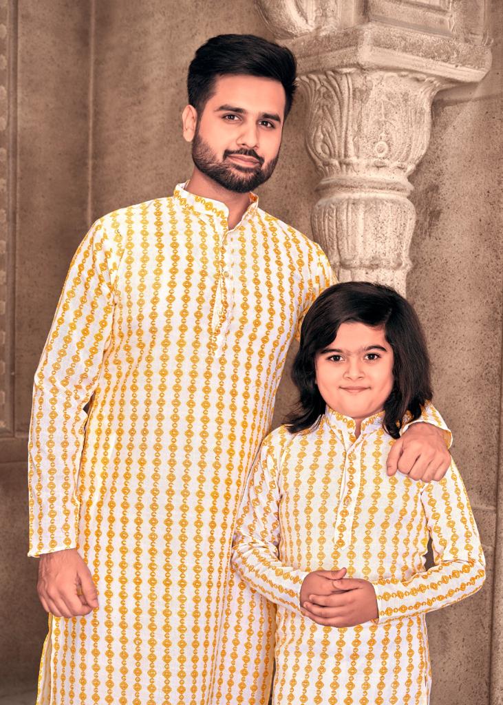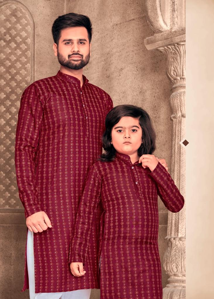 Father And Sons Vol 3 By Banwery Fashion Father Son Combo Of Cotton Foil Print Kurta With Payjama