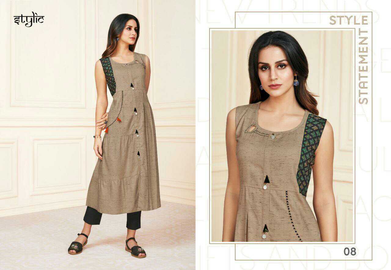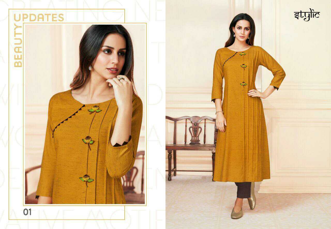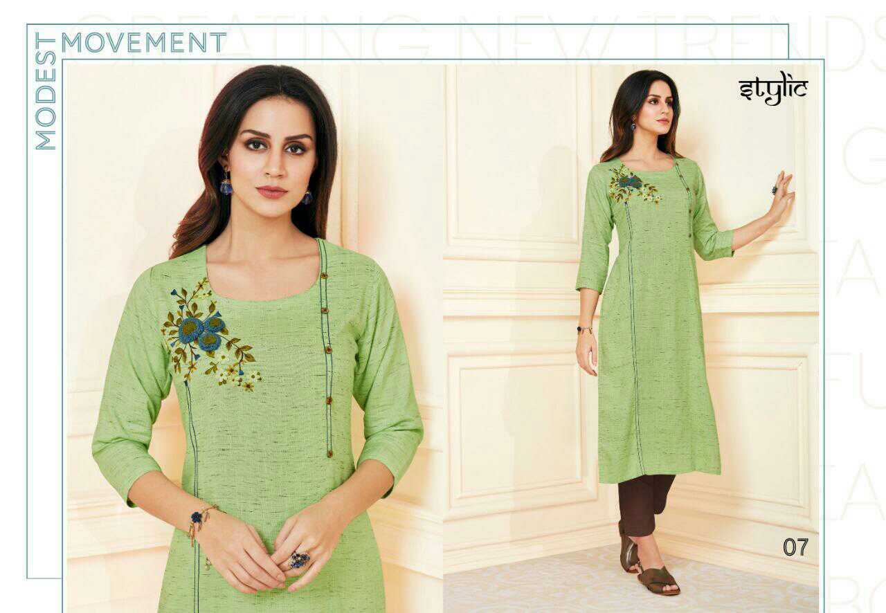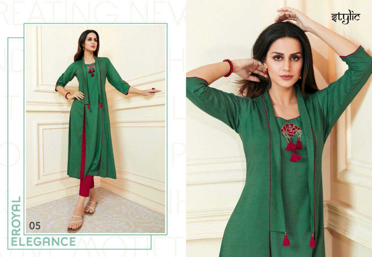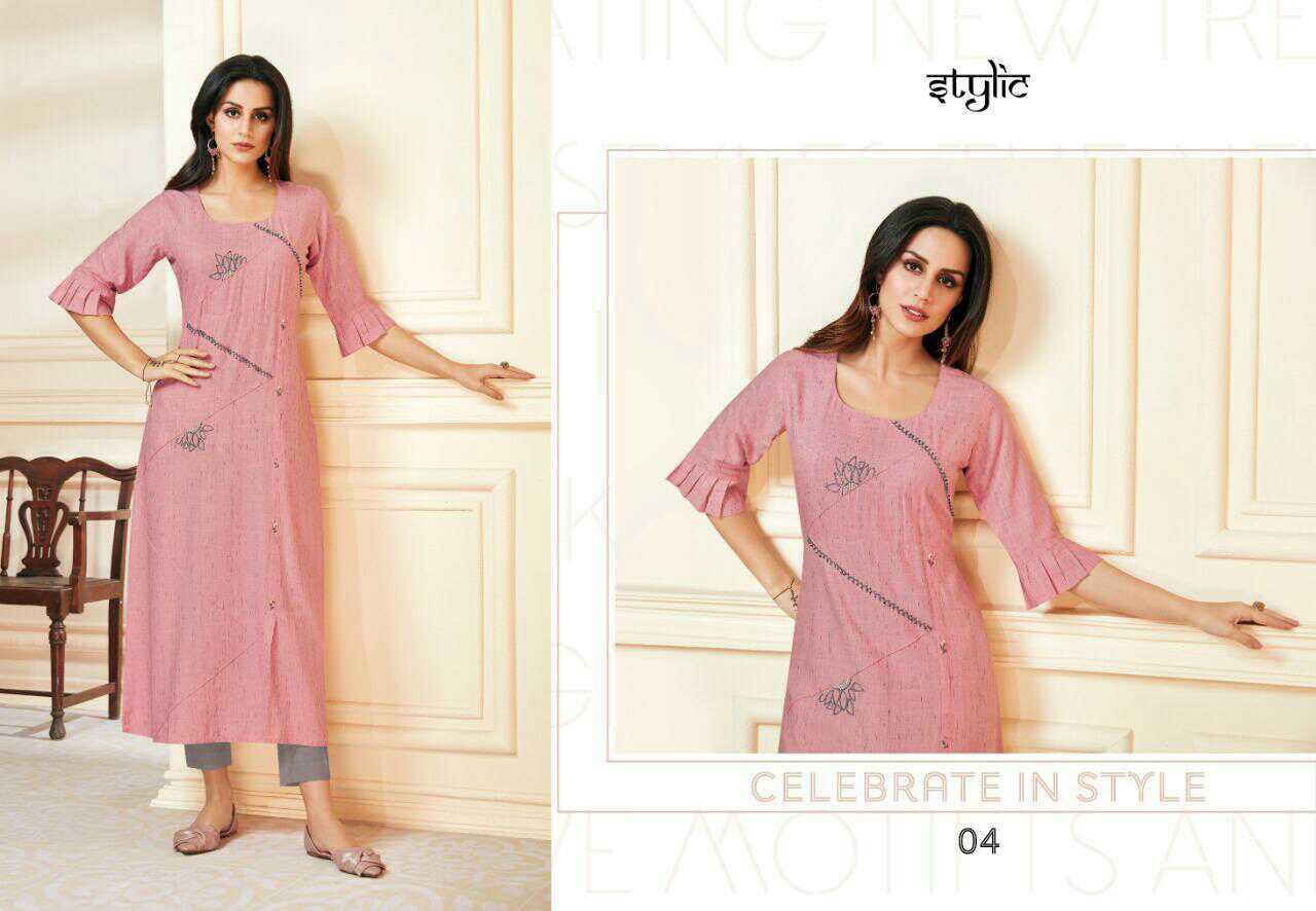 *Catalog* : Stylic-feel vol 2 *Brand* : Stylic *Fabric* : rayon *Piece*: 10 *Size*: S, M, L, XL, XXL, XXXL *Delivery Date*: 19-Apr-2019 *Price* : ?5750.0 *Average Price* : ?575.0 |