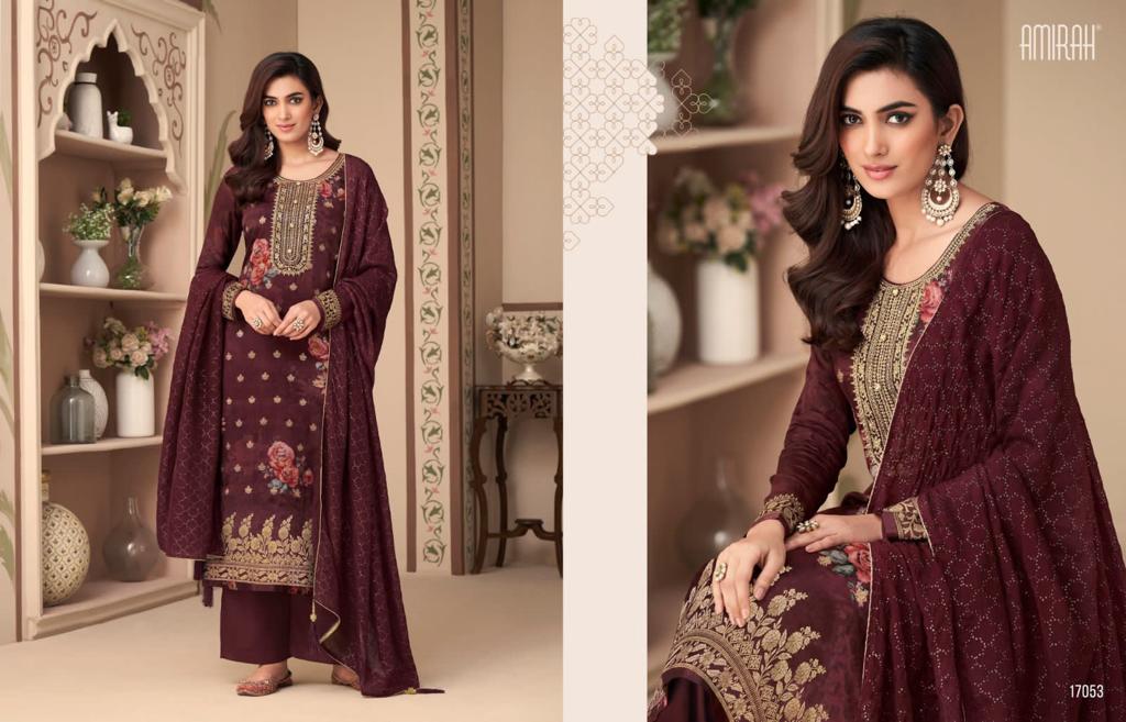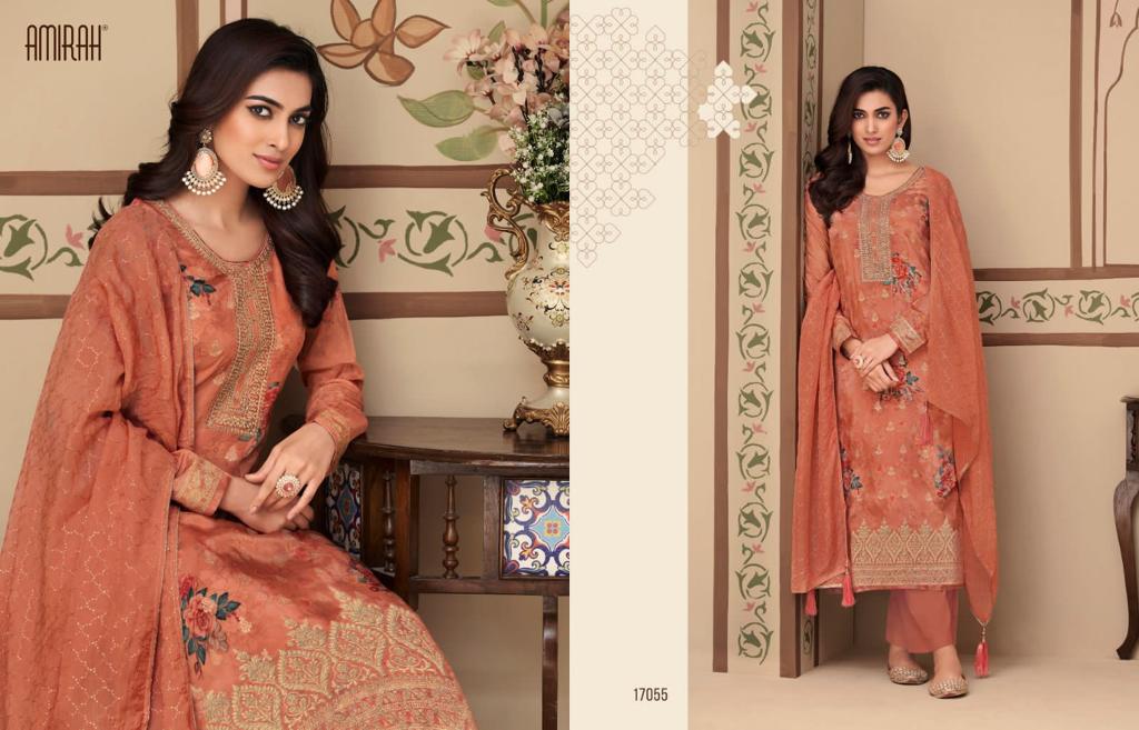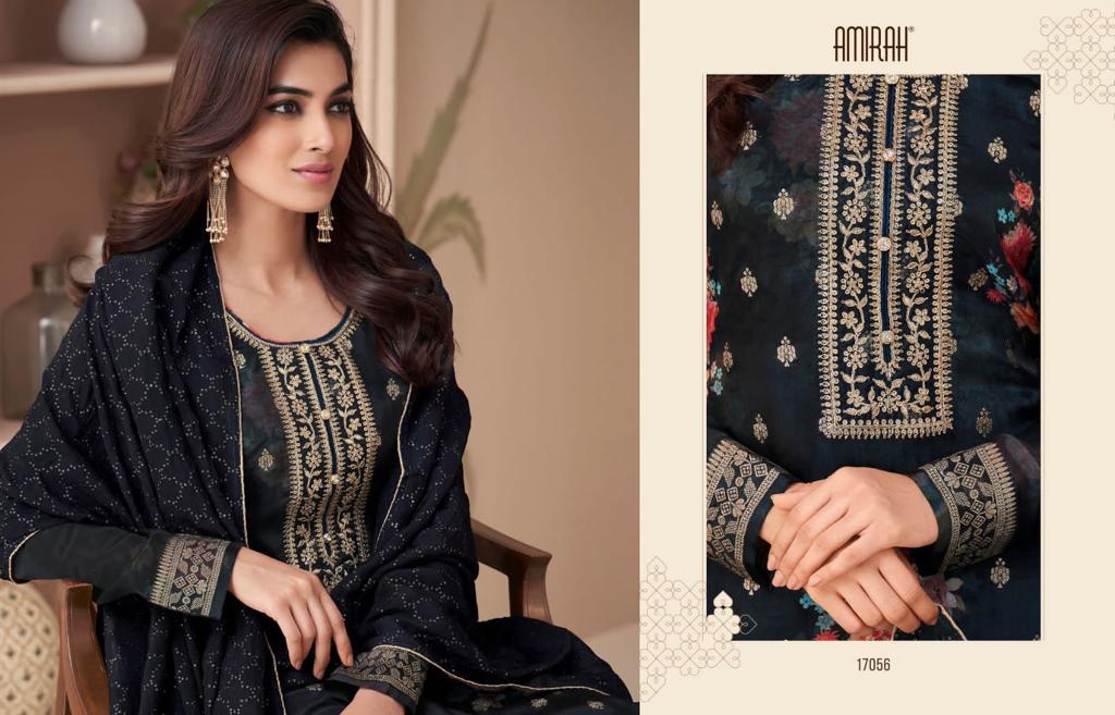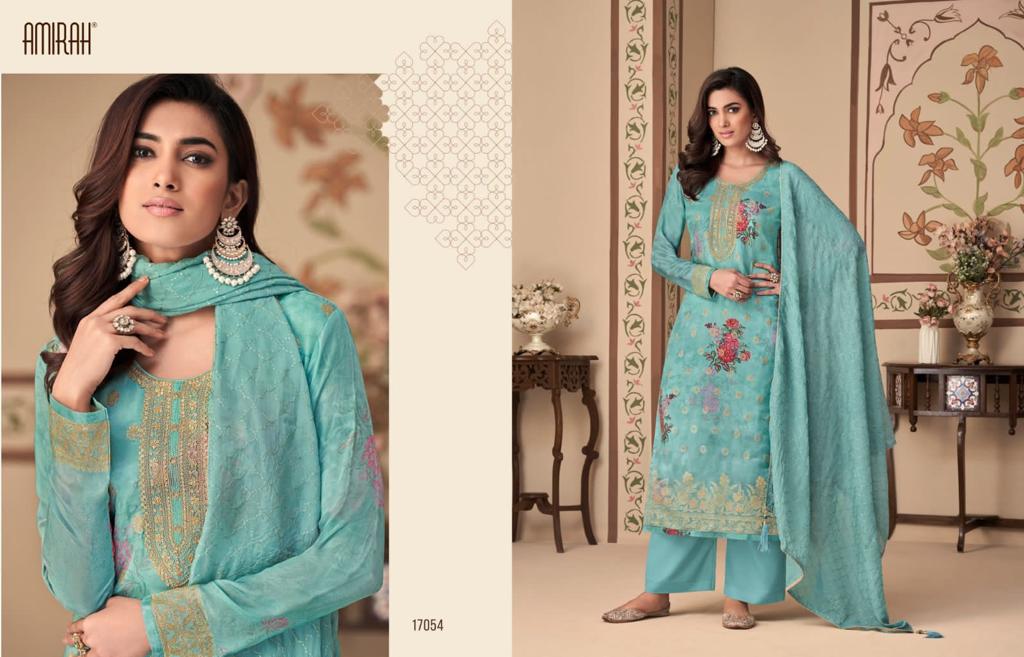 *"AMIRAH"*_ BRAND CREATED BY YOU..... *Â?*FANTASTIC "**collection of.......6designs....... ?*AMIRAH FEEZA*? Fabric Details:- ? Top : - *PURE HABUTAI SILK JAQARD WITH DIJITAL PRINT* INER BOTTOM :- *DULL SANTOON....* ??Dup. : - * Habutai Silk Organza With Embrodery Work * SINGLE AVAIALABLE 100+Singles |