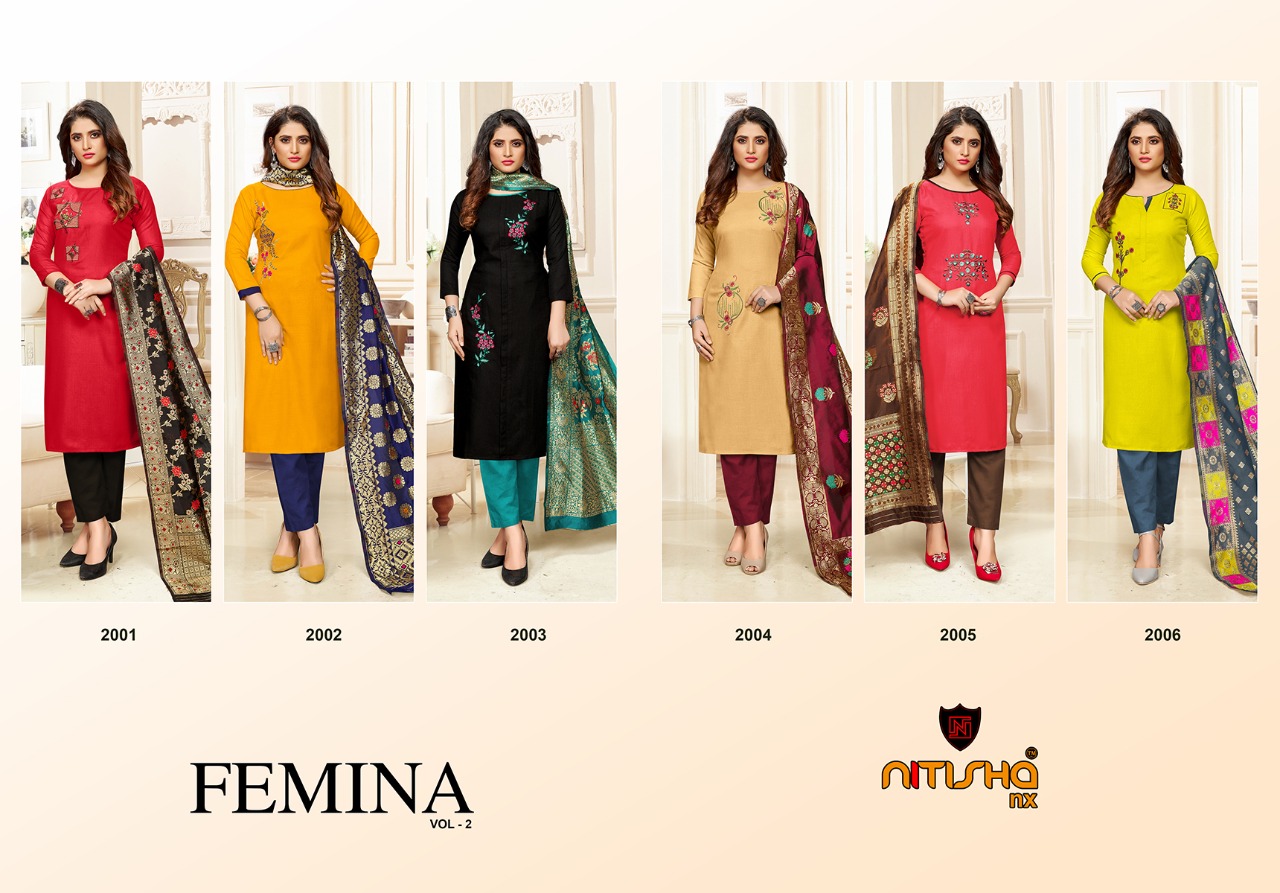 Buy Online Femina Vol 2 By Nitisha Nx Manufacturer Traders Surat Gujrat 6 Pcs of Full Catalogue at Wholesale Price. Looking for Femina Vol 2 By Nitisha Nx Manufacturer Traders Surat Gujrat Full Catalouge at Best Price? Buy Now Femina Vol 2 By Nitisha Nx Manufacturer Traders Surat Gujrat at Wholesale Rate of Rs 3594 with Total 6 Pcs from authroized dealer and supplier of Brand. Cost of Each piece is just only Rs 599 which is very low and affordable price to resale the product in your retail store ,This is Surat based Wholesale Supplier & Dealer of Brand. Click on Brand name to Know more about Brand's products.Call or Whatsapp on 9898838984 for booking or enquiry