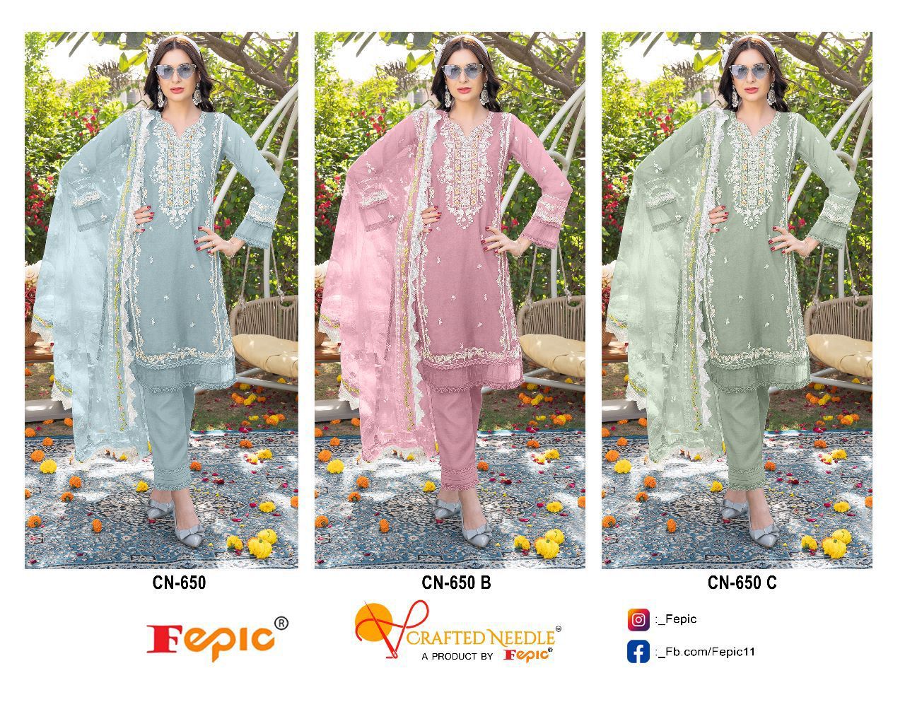 Buy Online Fepic New Design Cn 650 Luxury Pret Formal Wear Collection Manufacturer Surat 3 Pcs of Full Catalogue at Wholesale Price. Looking for Fepic New Design Cn 650 Luxury Pret Formal Wear Collection Manufacturer Surat Full Catalouge at Best Price? Buy Now Fepic New Design Cn 650 Luxury Pret Formal Wear Collection Manufacturer Surat at Wholesale Rate of Rs 4515 with Total 3 Pcs from authroized dealer and supplier of FEPIC Brand. Cost of Each piece is just only Rs 1505 which is very low and affordable price to resale the product in your retail store ,This is Surat based Wholesale Supplier & Dealer of FEPIC Brand. Click on Brand name to Know more about FEPIC Brand's products.Call or Whatsapp on 9898838984 for booking or enquiry