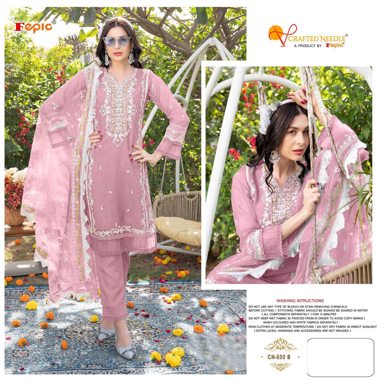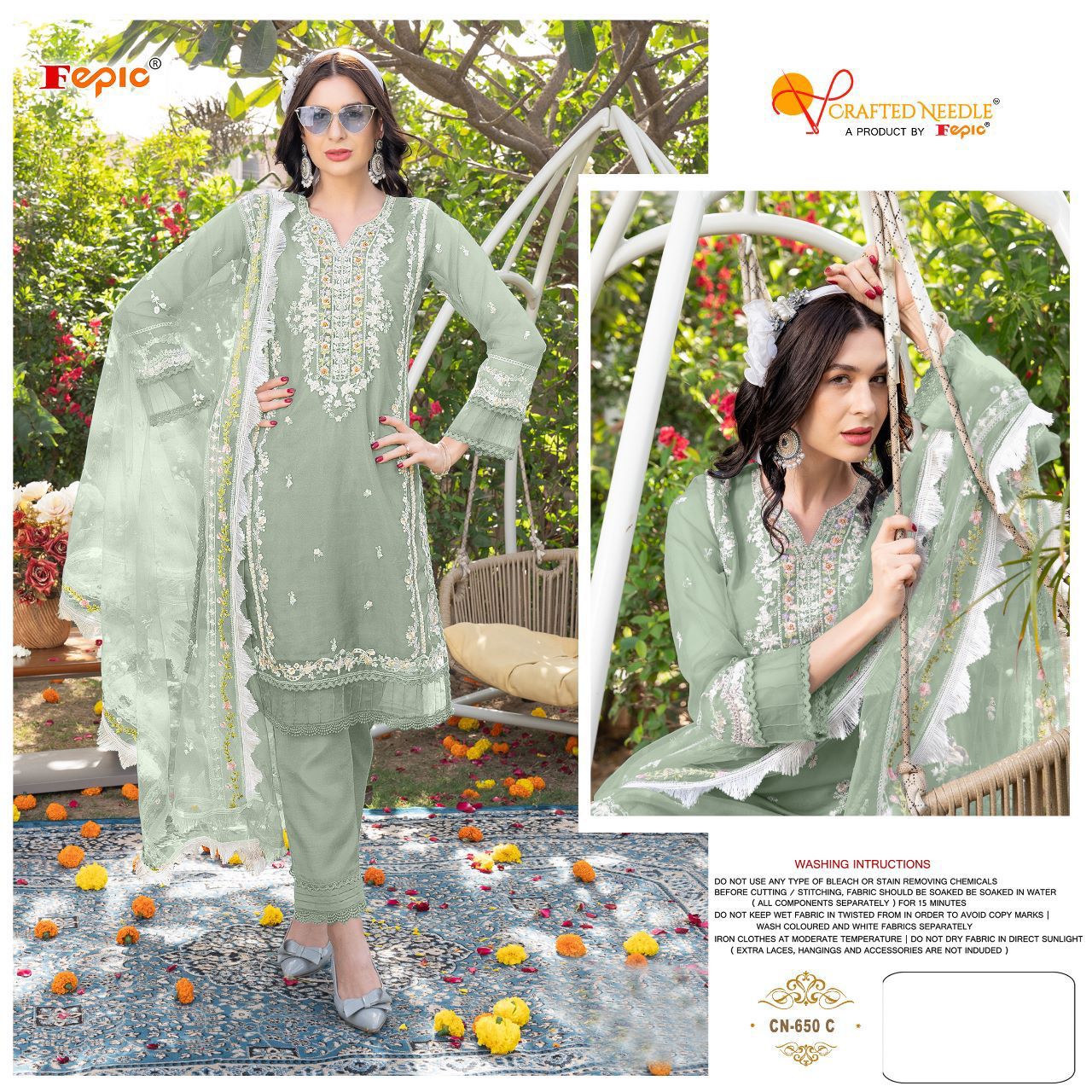 ?? *CRAFTED NEEDLE*( a product by fepic)?? ?? *New Desaign Launch*?? *(D.no=CN650 )* ?We are Introducing our *LUXURY PRET FORMAL WEAR COLLECTION* To Make You Unique and Classy.. ?With *Supirier Quality* and *Affordable Price* ????? ?????? ? *Description* ? ??????? *Designer Tunic with Sleeves* paired with *Designer Cigarette pants* ? *Details*? ??????? ? *Top*:- ORGANZA EMBROIDERED WITH KHATLI WORK ? *Bottom* :- VISCOUSE ? *Dupatta*- NET EMBROIDERED ? *Inner*- SANTOON ?? *Size Chart*?? ? *Top XL size chest* (42) ? *Bottom XL size* (up to 38) RATE - 1505/- GST ship extra ???Colour may slightly vary due to light effect??? ? *Book Fast Limited Stock* ? 100+single |