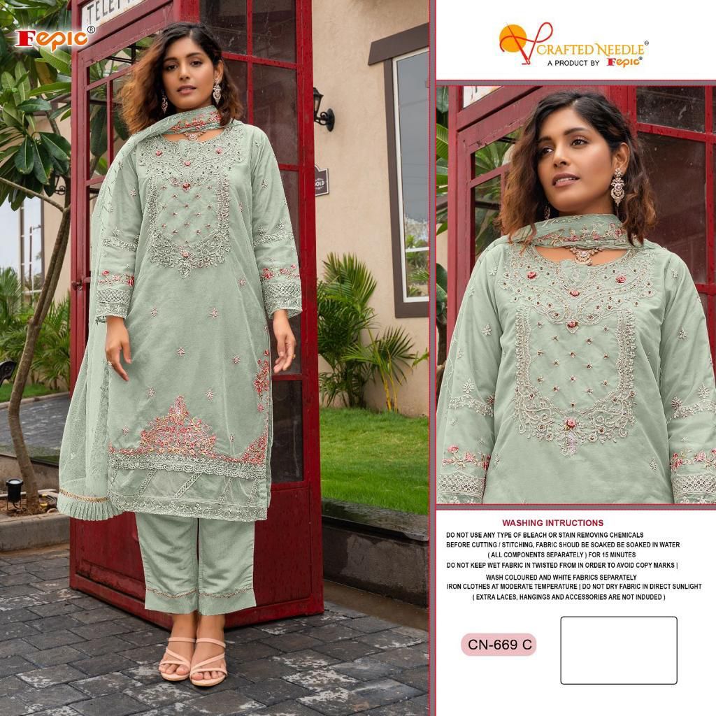 ?? *CRAFTED NEEDLE*( a product by fepic)?? ?? *New Desaign Launch*?? *(D.no=CN 669 )* ?We are Introducing our *LUXURY PRET FORMAL WEAR COLLECTION* To Make You Unique and Classy.. ?With *Supirier Quality* and *Affordable Price* ????? ?????? ? *Description* ? ??????? *Designer Tunic with Sleeves* paired with *Designer Cigarette pants* ? *Details*? ??????? ? *Top*:- ORGANZA EMBROIDERED WITH HEAVY KHATLI WORK ? *Bottom* :- VISCOUSE ? *Dupatta*- NET EMBROIDERED ? *Inner*- SANTOON ?? *Size Chart*?? ? *Top XL size chest* (42) ? *Bottom XL size* (up to 38) ? *Top XXL size chest* (44) ? *Bottom XXL size* (up to 42 ) ? * Rate*- * 1565 */- Gst ship extra ???Colour may slightly vary due to light effect??? ? *Book Fast Limited Stock* ? 100+single |