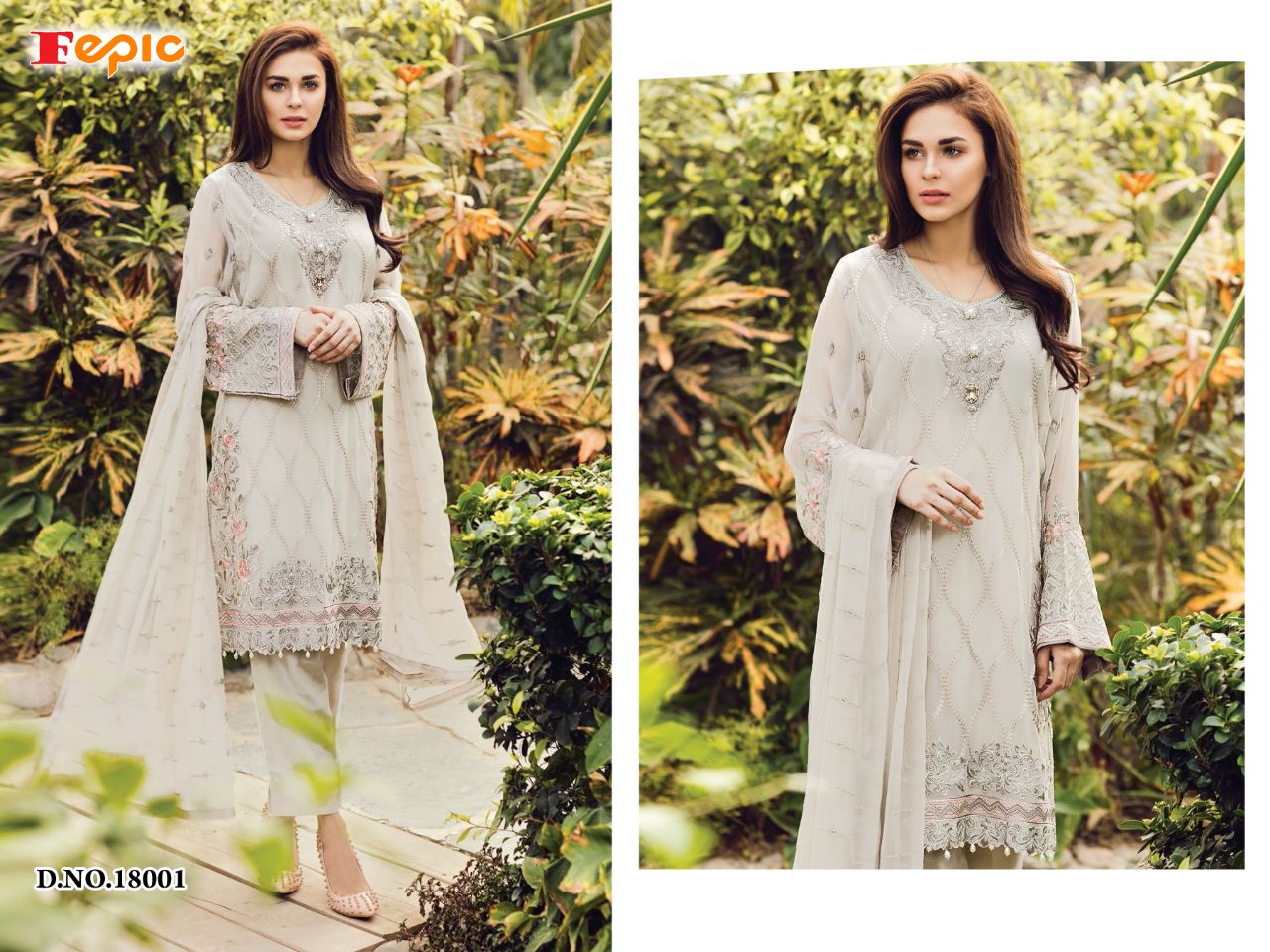 Buy Online Fepic Rosemeen Crinkles 18001 Series Georgete Pakistani Suit 9 Pcs of Full Catalogue at Wholesale Price. Looking for Fepic Rosemeen Crinkles 18001 Series Georgete Pakistani Suit Full Catalouge at Best Price? Buy Now Fepic Rosemeen Crinkles 18001 Series Georgete Pakistani Suit at Wholesale Rate of Rs 10791 with Total 9 Pcs from authroized dealer and supplier of FEPIC Brand. Cost of Each piece is just only Rs 1199 which is very low and affordable price to resale the product in your retail store ,This is Surat based Wholesale Supplier & Dealer of FEPIC Brand. Click on Brand name to Know more about FEPIC Brand's products.Call or Whatsapp on 9898838984 for booking or enquiry