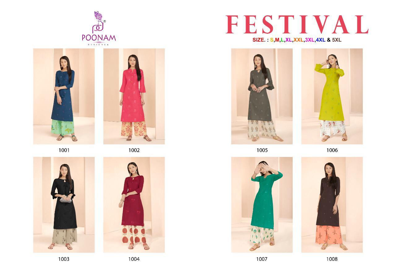 Buy Online Festival By Poonam Designer Kurtis With Plazzo Wholesale Supplier Gujarat 8 Pcs of Full Catalogue at Wholesale Price. Looking for Festival By Poonam Designer Kurtis With Plazzo Wholesale Supplier Gujarat Full Catalouge at Best Price? Buy Now Festival By Poonam Designer Kurtis With Plazzo Wholesale Supplier Gujarat at Wholesale Rate of Rs 4792 with Total 8 Pcs from authroized dealer and supplier of Poonam designer Brand. Cost of Each piece is just only Rs 599 which is very low and affordable price to resale the product in your retail store ,This is Surat based Wholesale Supplier & Dealer of Poonam designer Brand. Click on Brand name to Know more about Poonam designer Brand's products.Call or Whatsapp on 9898838984 for booking or enquiry