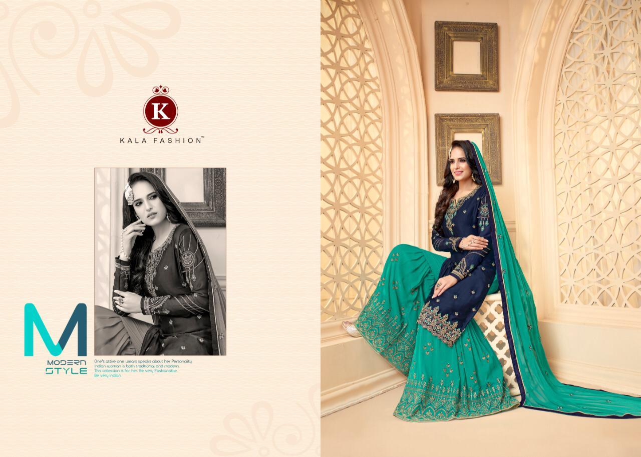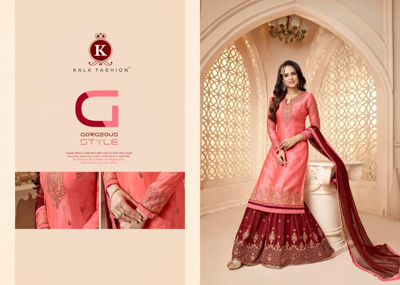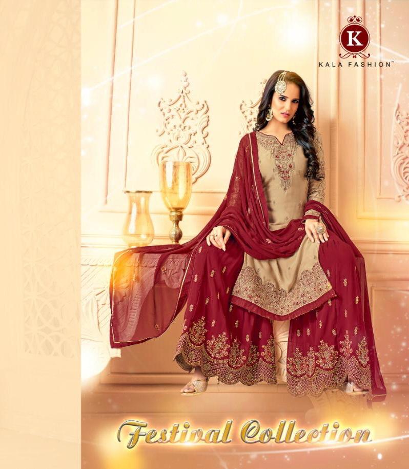 Festival Collection By Kala Fashion 2001 Series Fancy Party Wear Georgette Satin Sarara Suit Collection Wholesaler Surat