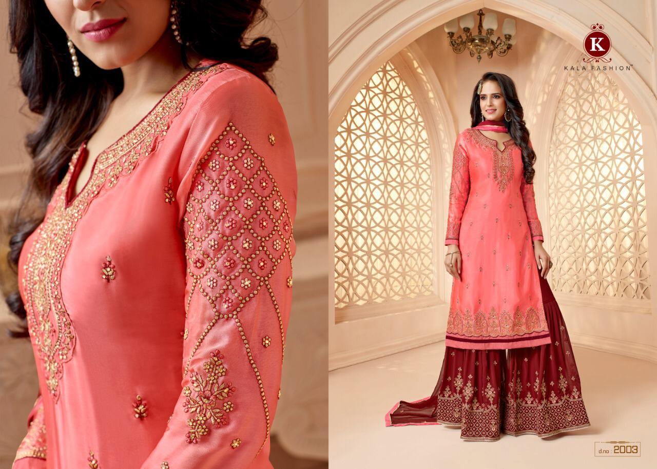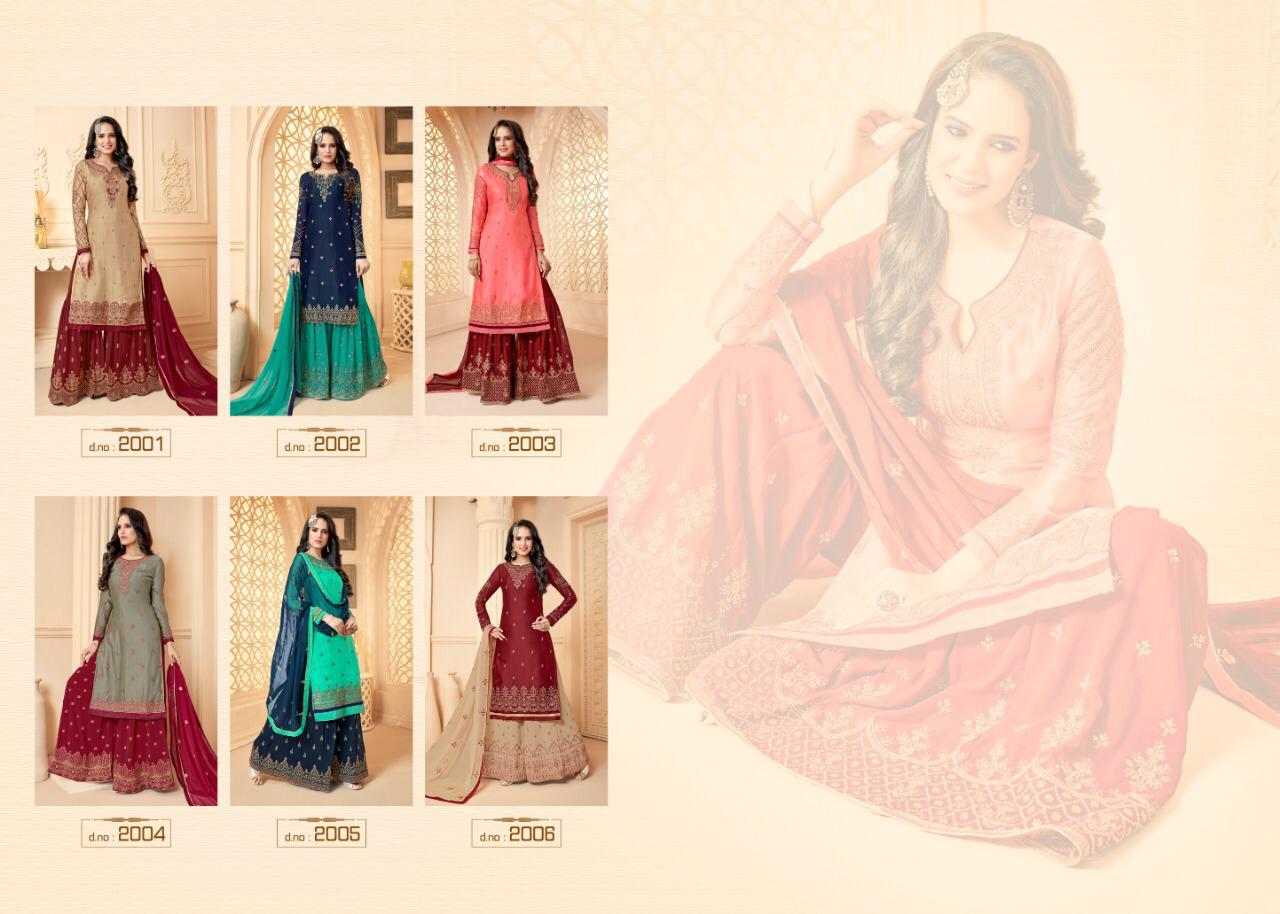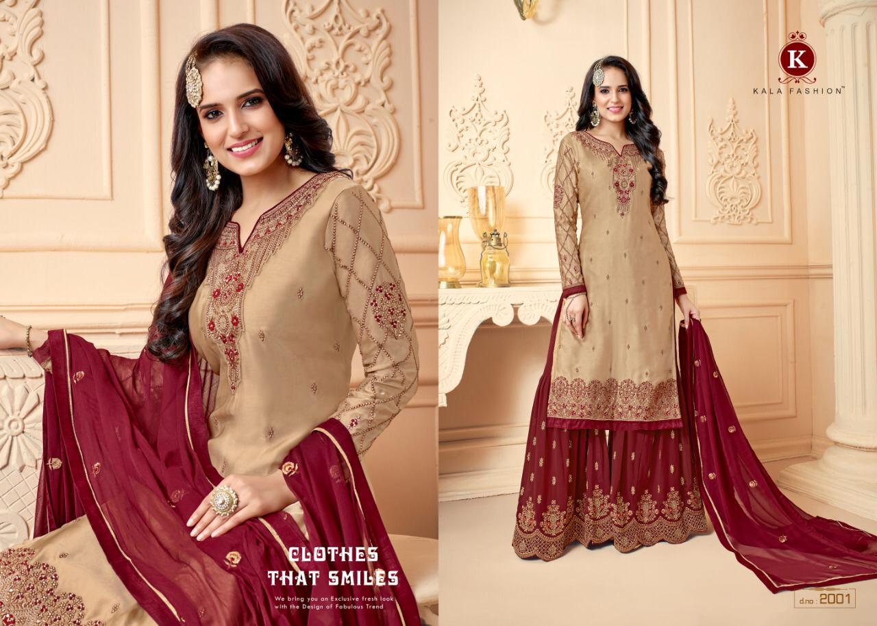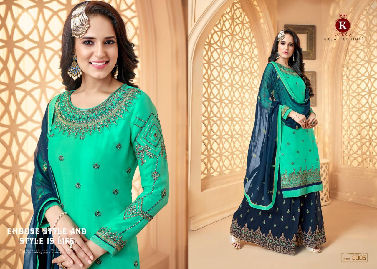 Buy Online Festival Collection By Kala Fashion 2001 Series Fancy Party Wear Georgette Satin Sarara Suit Collection Wholesaler Surat 6 Pcs of Full Catalogue at Wholesale Price. Looking for Festival Collection By Kala Fashion 2001 Series Fancy Party Wear Georgette Satin Sarara Suit Collection Wholesaler Surat Full Catalouge at Best Price? Buy Now Festival Collection By Kala Fashion 2001 Series Fancy Party Wear Georgette Satin Sarara Suit Collection Wholesaler Surat at Wholesale Rate of Rs 10794 with Total 6 Pcs from authroized dealer and supplier of KALA FASHIONS Brand. Cost of Each piece is just only Rs 1799 which is very low and affordable price to resale the product in your retail store ,This is Surat based Wholesale Supplier & Dealer of KALA FASHIONS Brand. Click on Brand name to Know more about KALA FASHIONS Brand's products.Call or Whatsapp on 9898838984 for booking or enquiry