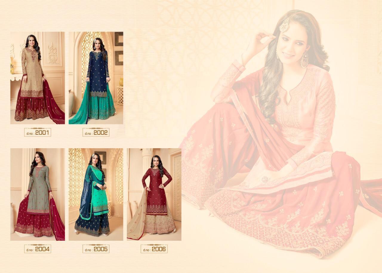 Dear Customer, We are launching our new Catalog Brand -KALA FASHION Catalog Name :- FESTIVAL COLLECTION Series - 2001 ?Description? ?Top: GEORGET SATIN WITH EMBROIDERY WORK & SLEEVES WORK ?Bottom : PLAZZO WITH STICH GEORGET MATERIAL ?Dupatta : CIFFON DUPATTA WITH EMBROIDERY WORK ?Beautiful :6 design Set SET AND LOOSE * Singel Available * Hsn code 5407 rate -1799/- per Pcs . Single 1899/- GST 5 Percent Extra. * set & Loose & Singel & Multiple * Delivery- Ready |