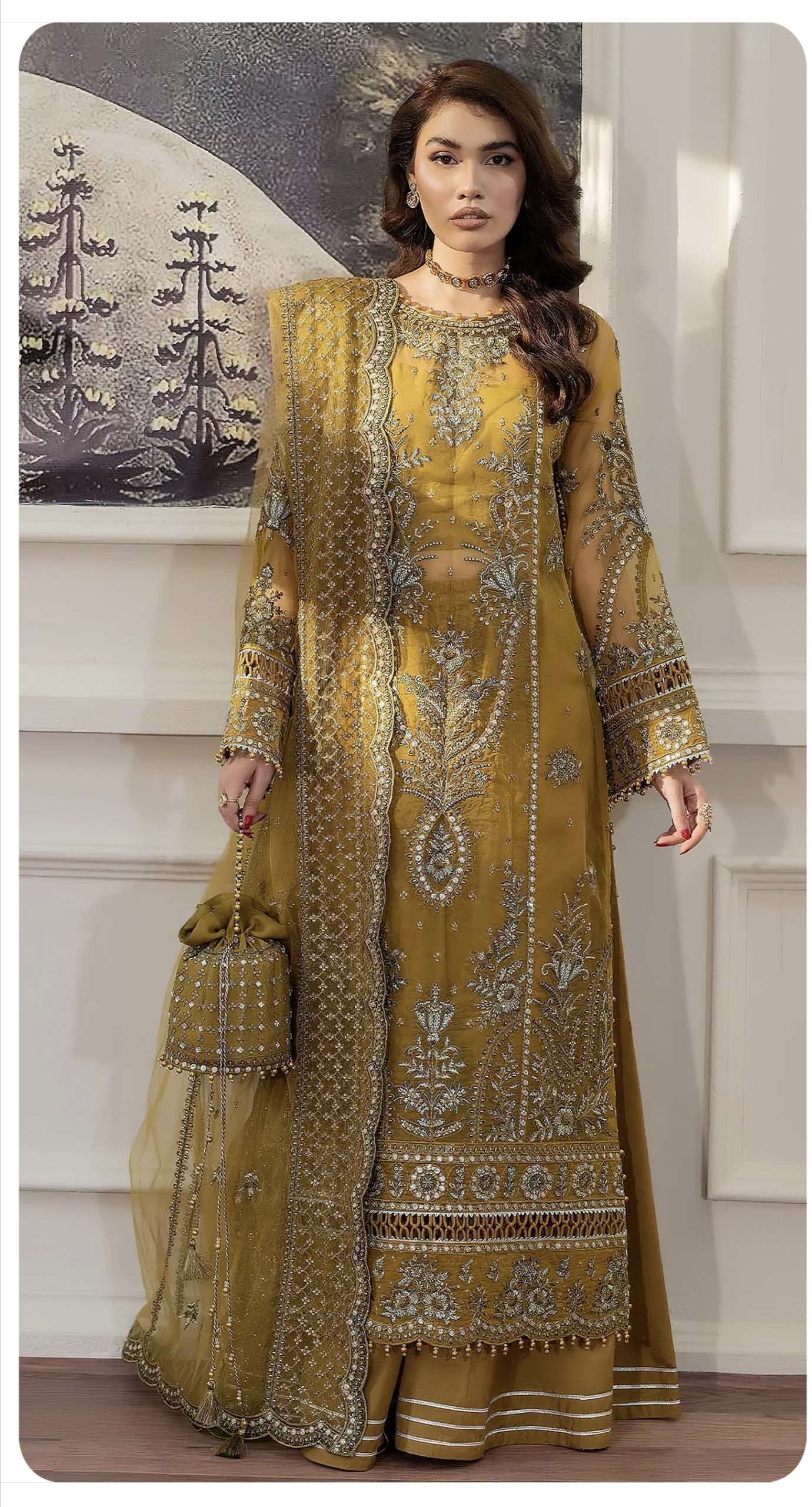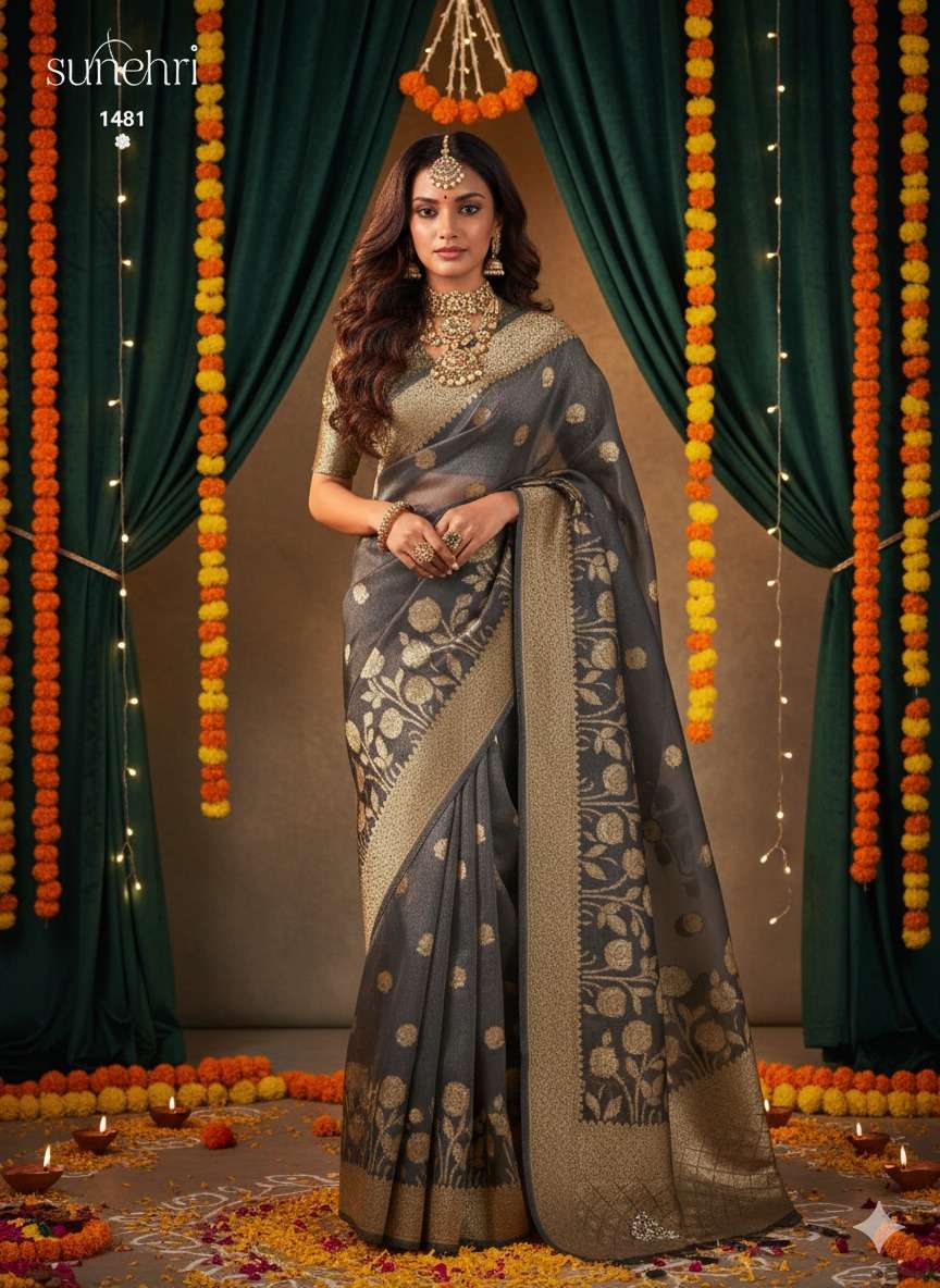 *FABRIC : BANARASI ORGANZA WITH ZARI WEAVING WITH ZARKAN WORK*