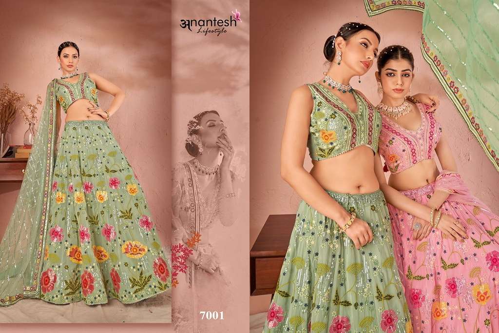 Buy Online FESTIVALS VOL 1 SKU 7001 AND 7003 by ANANTESH LIFESTYLE lehenga collection manufacturer surat 4 Pcs of Full Catalogue at Wholesale Price. Looking for FESTIVALS VOL 1 SKU 7001 AND 7003 by ANANTESH LIFESTYLE lehenga collection manufacturer surat Full Catalouge at Best Price? Buy Now FESTIVALS VOL 1 SKU 7001 AND 7003 by ANANTESH LIFESTYLE lehenga collection manufacturer surat at Wholesale Rate of Rs 23980 with Total 4 Pcs from authroized dealer and supplier of Anantesh Lifestyle Brand. Cost of Each piece is just only Rs 5995 which is very low and affordable price to resale the product in your retail store ,This is Surat based Wholesale Supplier & Dealer of Anantesh Lifestyle Brand. Click on Brand name to Know more about Anantesh Lifestyle Brand's products.Call or Whatsapp on 9898838984 for booking or enquiry