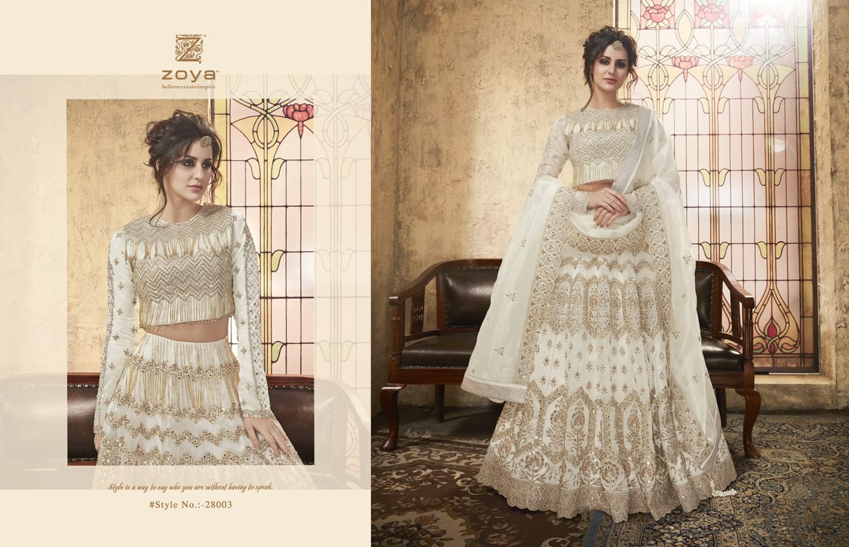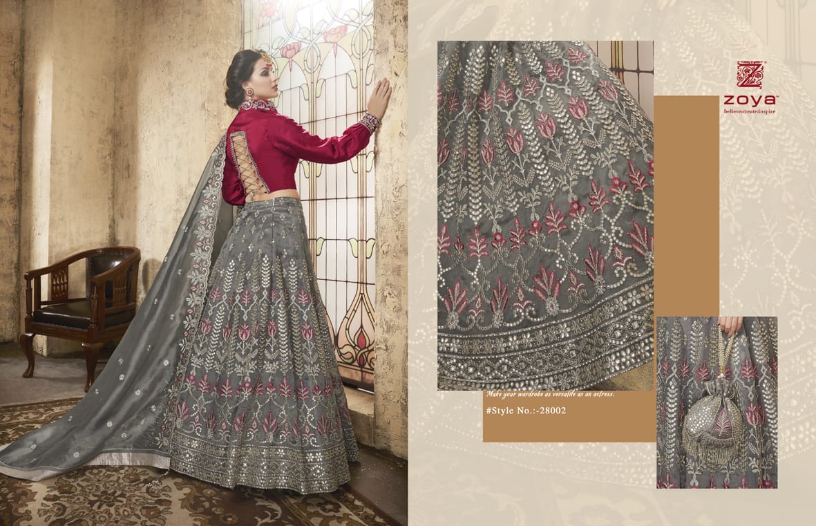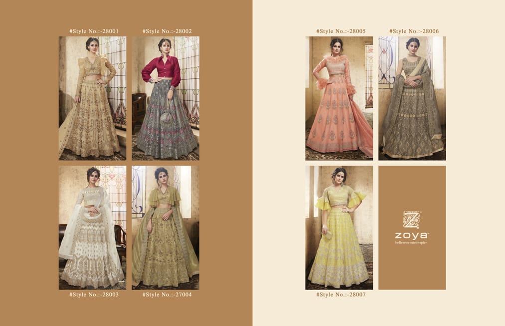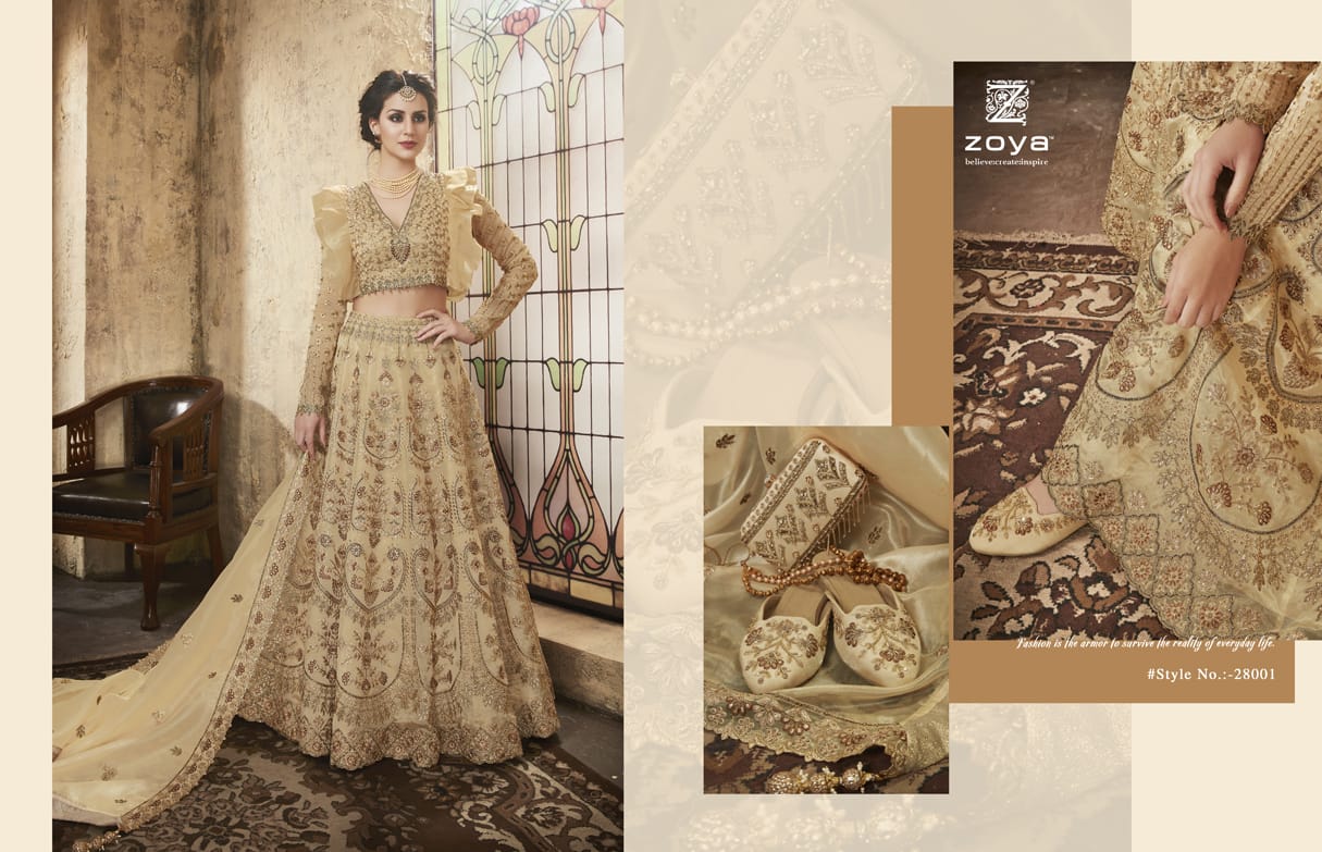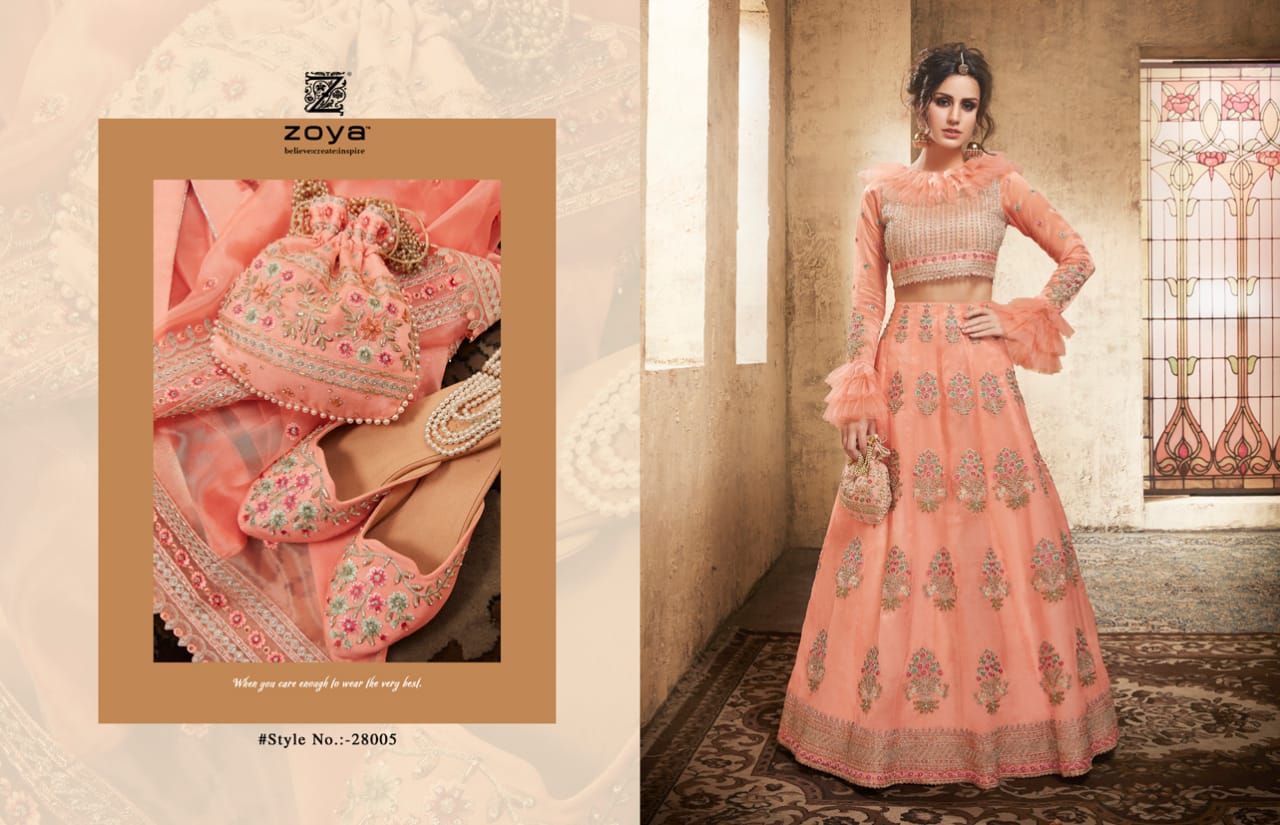 Buy Online Festive By Zoya 28001 Series Fancy Bridal Designer Party Wear Lehenga Choli With Bag And Mojris Collection Wholesaler Surat 7 Pcs of Full Catalogue at Wholesale Price. Looking for Festive By Zoya 28001 Series Fancy Bridal Designer Party Wear Lehenga Choli With Bag And Mojris Collection Wholesaler Surat Full Catalouge at Best Price? Buy Now Festive By Zoya 28001 Series Fancy Bridal Designer Party Wear Lehenga Choli With Bag And Mojris Collection Wholesaler Surat at Wholesale Rate of Rs 48951 with Total 7 Pcs from authroized dealer and supplier of Zoya Brand. Cost of Each piece is just only Rs 6993 which is very low and affordable price to resale the product in your retail store ,This is Surat based Wholesale Supplier & Dealer of Zoya Brand. Click on Brand name to Know more about Zoya Brand's products.Call or Whatsapp on 9898838984 for booking or enquiry