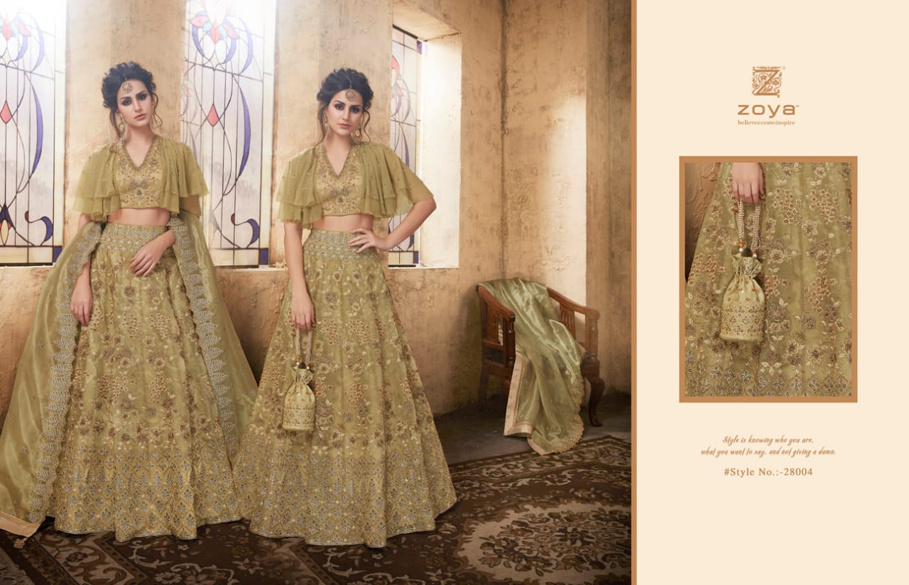 Festive By Zoya 28001 Series Fancy Bridal Designer Party Wear Lehenga Choli With Bag And Mojris Collection Wholesaler Surat