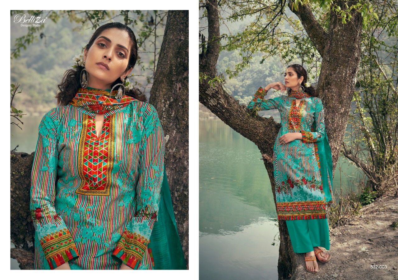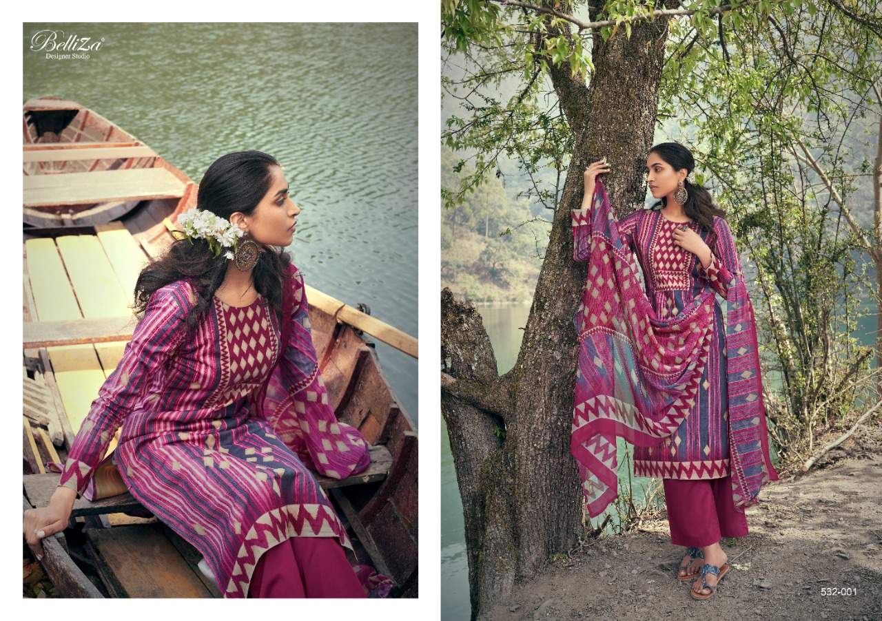 # BELLIZA # FESTIVE FUSION _*......BelliZa DesigNer StuDio......*_ _presents_ *"FESTIVE FUSION"* _...pure premium cotton collection..._ ?Top: 100% Pure Cotton Digital Print (2.50 mtrs) ?Dupatta: Exclusive Printed Nazneen chiffon dupatta with four side lace. (2.30 mtr) ?Bottom: pure cotton (3 mtrs) ?Pcs: 10 459+5. Set to set # Book Now SINGLE Available 559+5 % single |