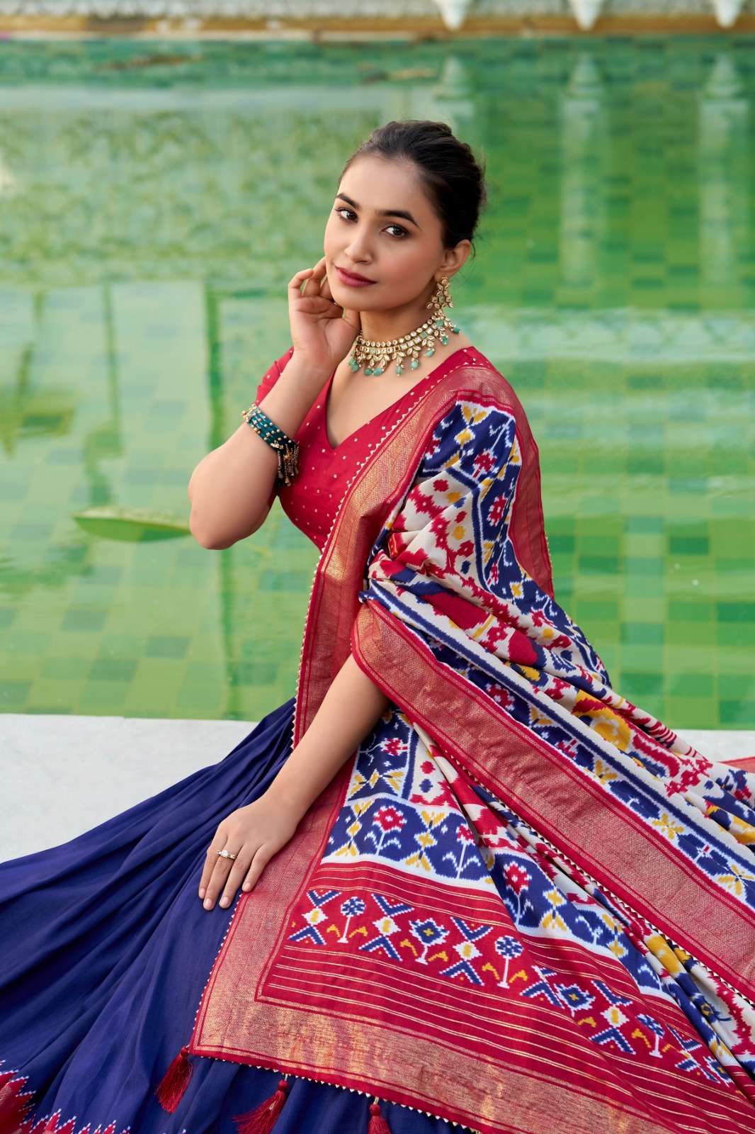 *Dupatta* Dupatta Fabric : Tussar Silk Dupatta Work : Patola Print with Gotta Patti Lace Border also comes with tassels Dupatta Length : 2.5 Meter