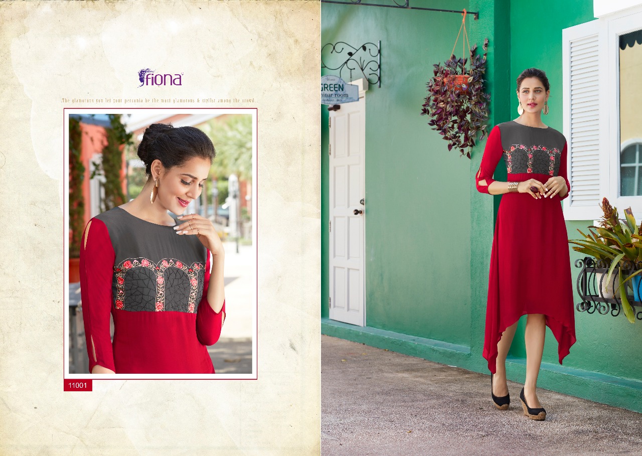 Fiona Fashion Look 11001 Series Designer Kurti Catlog Wholesale Dealer And Supplier Surat