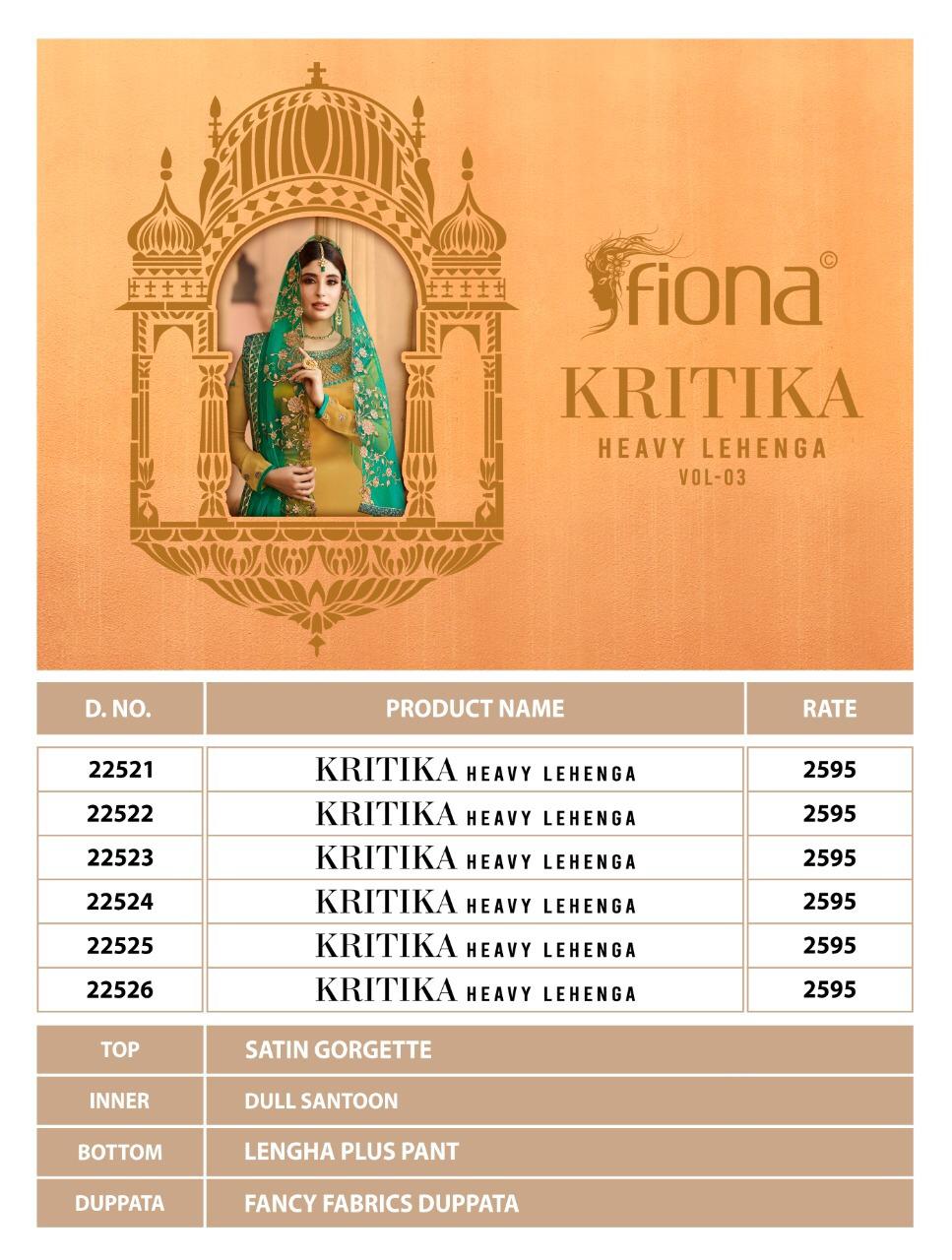 Fiona Kritika Heavy Lehenga Series 22521 To 22526 Designer Party Wear Lehnga Suits Wholesale Supplier Gujarat