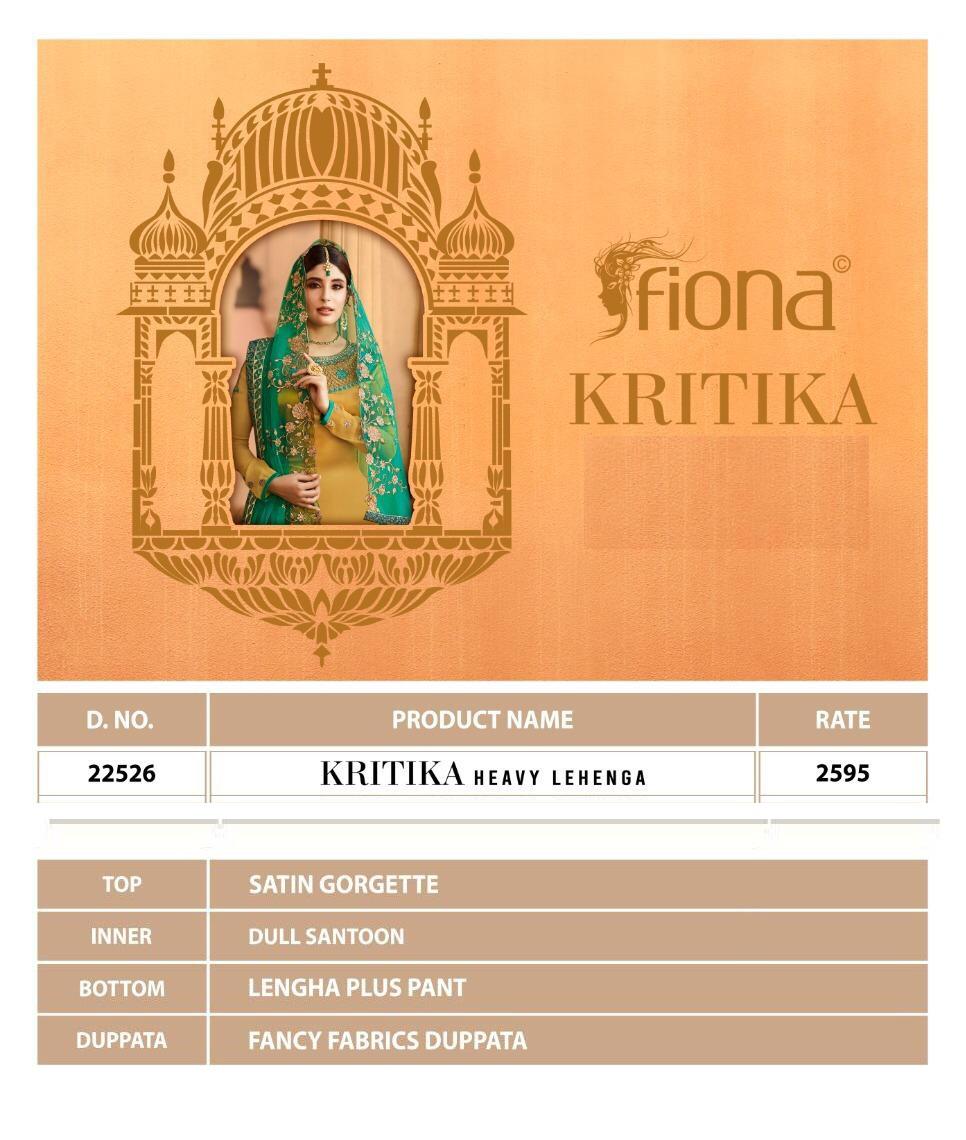 Fiona Kritika Heavy Lehnga Series 22526 Designer Suits Set And Single Wholesale Supplier And Dealer Gujarat