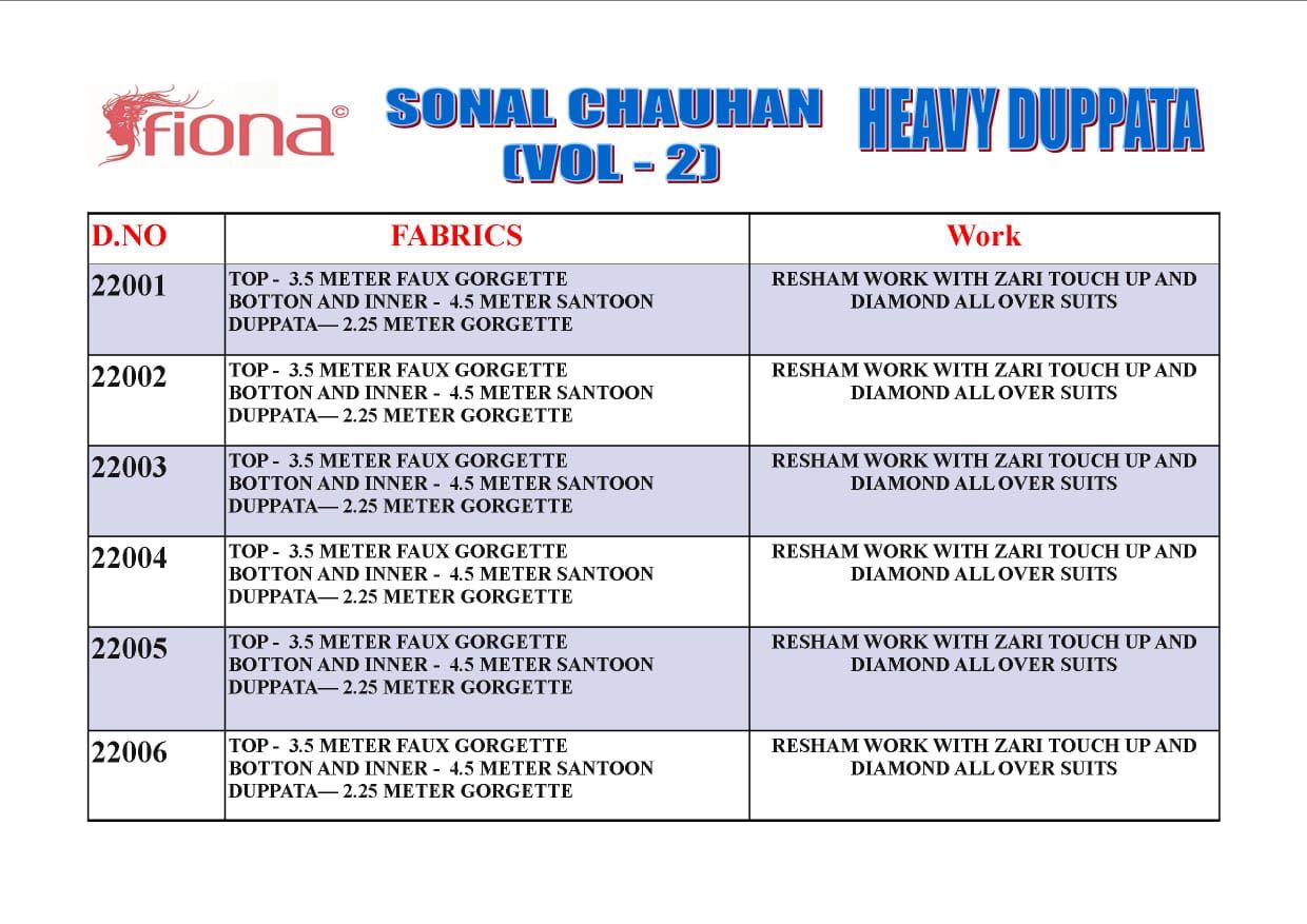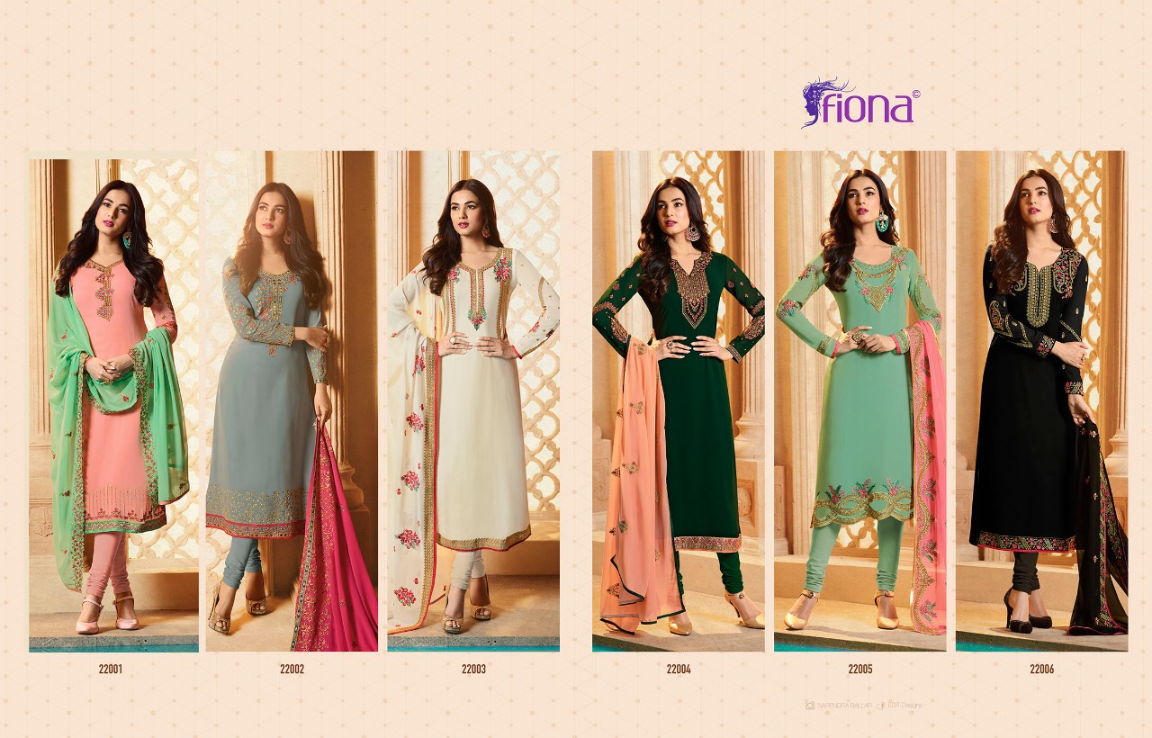 Buy Online Fiona Sonal Chauhan Vol 2 Series 22001 To 22006 Designer Party Wear Suits Wholesale Supplier And Dealer Gujarat 6 Pcs of Full Catalogue at Wholesale Price. Looking for Fiona Sonal Chauhan Vol 2 Series 22001 To 22006 Designer Party Wear Suits Wholesale Supplier And Dealer Gujarat Full Catalouge at Best Price? Buy Now Fiona Sonal Chauhan Vol 2 Series 22001 To 22006 Designer Party Wear Suits Wholesale Supplier And Dealer Gujarat at Wholesale Rate of Rs 9570 with Total 6 Pcs from authroized dealer and supplier of FIONA Brand. Cost of Each piece is just only Rs 1595 which is very low and affordable price to resale the product in your retail store ,This is Surat based Wholesale Supplier & Dealer of FIONA Brand. Click on Brand name to Know more about FIONA Brand's products.Call or Whatsapp on 9898838984 for booking or enquiry