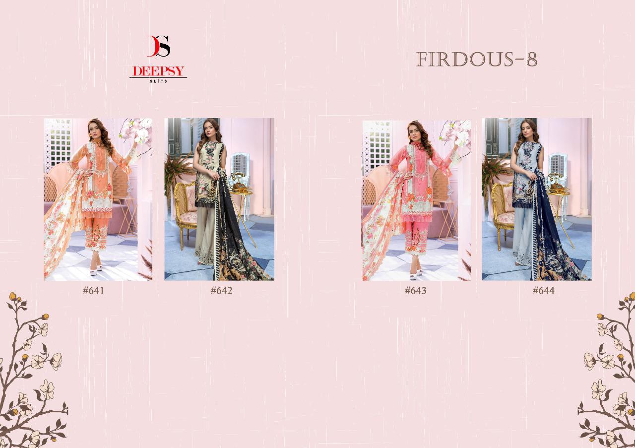 Buy Online Firdous 8 By Deepsy Pakistani Suits Wholesale Supplier And Dealer Gujarat 4 Pcs of Full Catalogue at Wholesale Price. Looking for Firdous 8 By Deepsy Pakistani Suits Wholesale Supplier And Dealer Gujarat Full Catalouge at Best Price? Buy Now Firdous 8 By Deepsy Pakistani Suits Wholesale Supplier And Dealer Gujarat at Wholesale Rate of Rs 2796 with Total 4 Pcs from authroized dealer and supplier of DEEPSY Brand. Cost of Each piece is just only Rs 699 which is very low and affordable price to resale the product in your retail store ,This is Surat based Wholesale Supplier & Dealer of DEEPSY Brand. Click on Brand name to Know more about DEEPSY Brand's products.Call or Whatsapp on 9898838984 for booking or enquiry