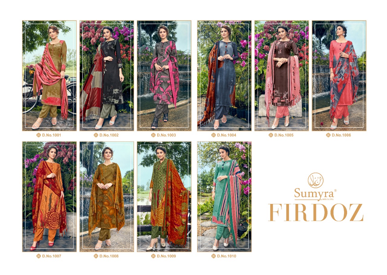 Buy Online Firdoz By Sumyra Pashmina Dress Materials Wholesale Supplier Gujarat 10 Pcs of Full Catalogue at Wholesale Price. Looking for Firdoz By Sumyra Pashmina Dress Materials Wholesale Supplier Gujarat Full Catalouge at Best Price? Buy Now Firdoz By Sumyra Pashmina Dress Materials Wholesale Supplier Gujarat at Wholesale Rate of Rs 5100 with Total 10 Pcs from authroized dealer and supplier of Brand. Cost of Each piece is just only Rs 510 which is very low and affordable price to resale the product in your retail store ,This is Surat based Wholesale Supplier & Dealer of Brand. Click on Brand name to Know more about Brand's products.Call or Whatsapp on 9898838984 for booking or enquiry