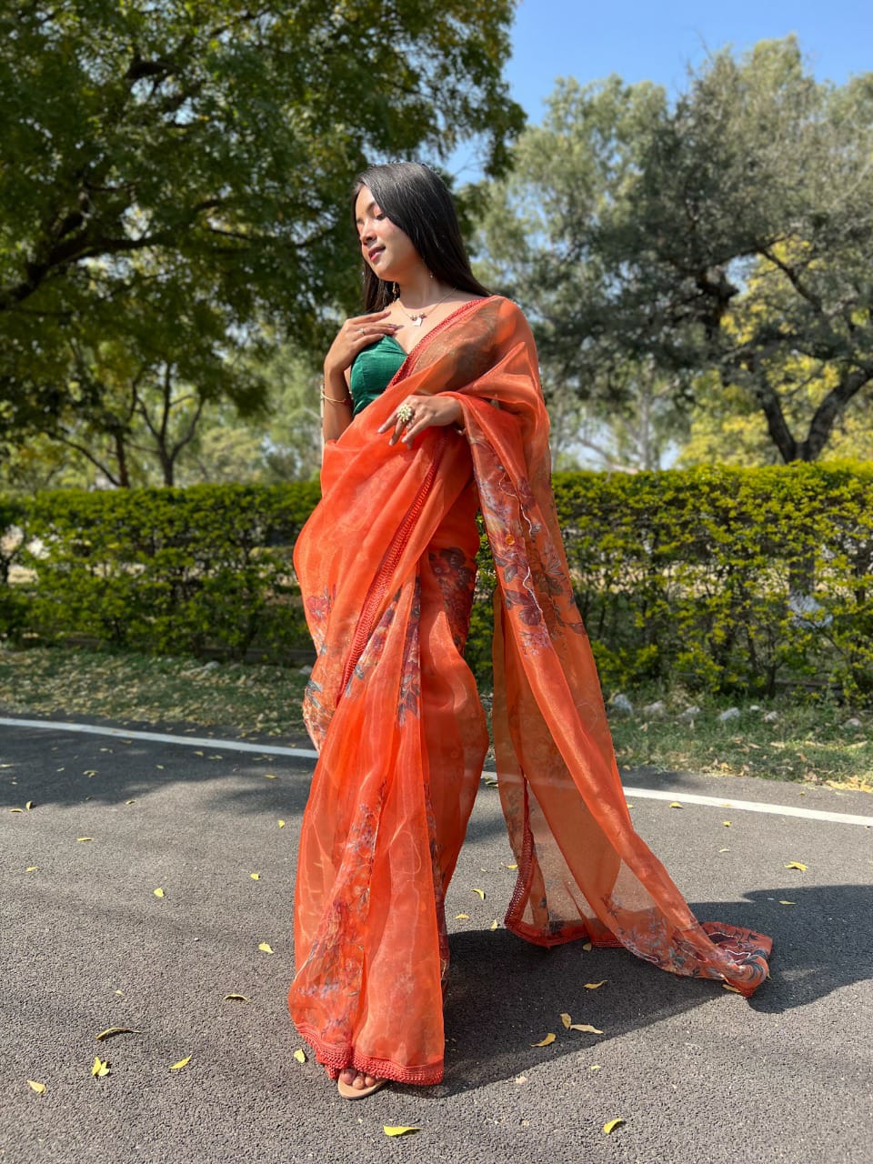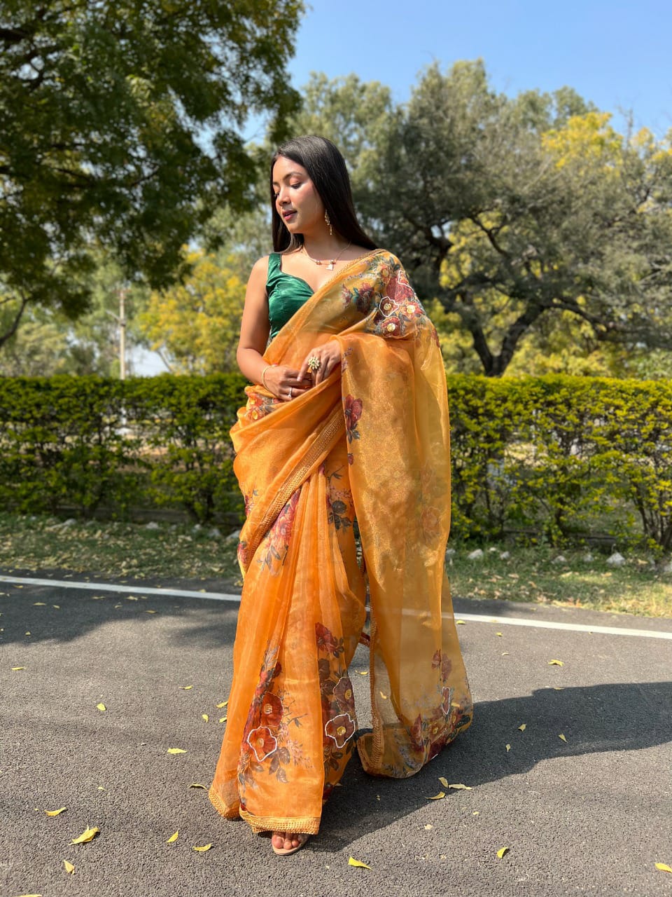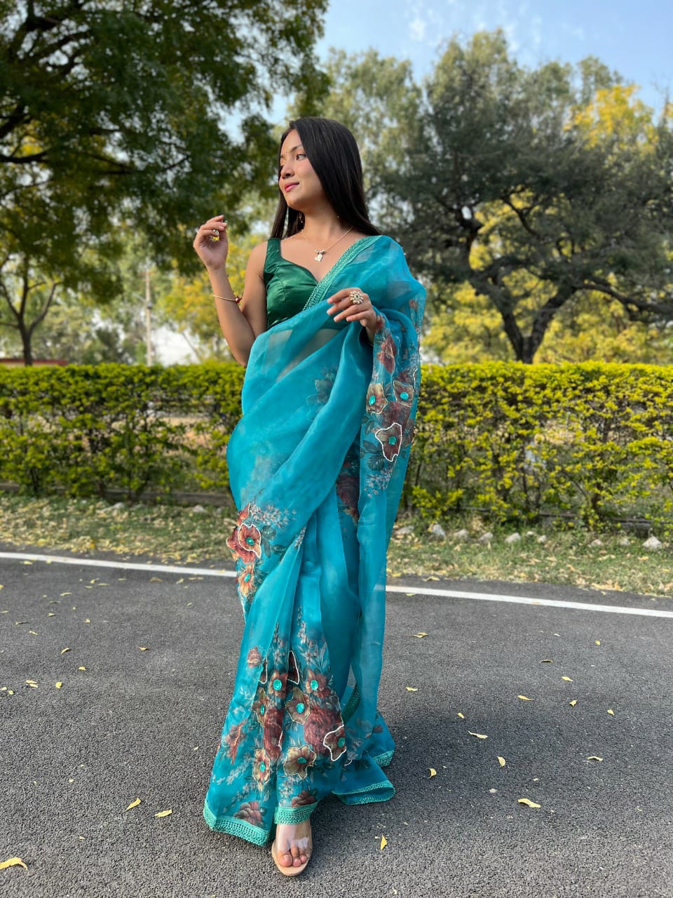 Firozi Designer Organza Saree Single Avilable Wholesaler Surat Gujarat