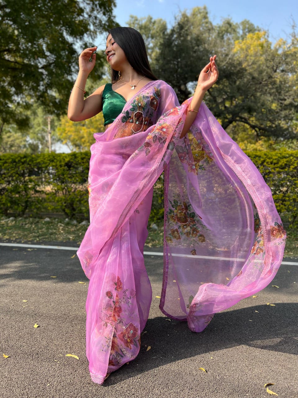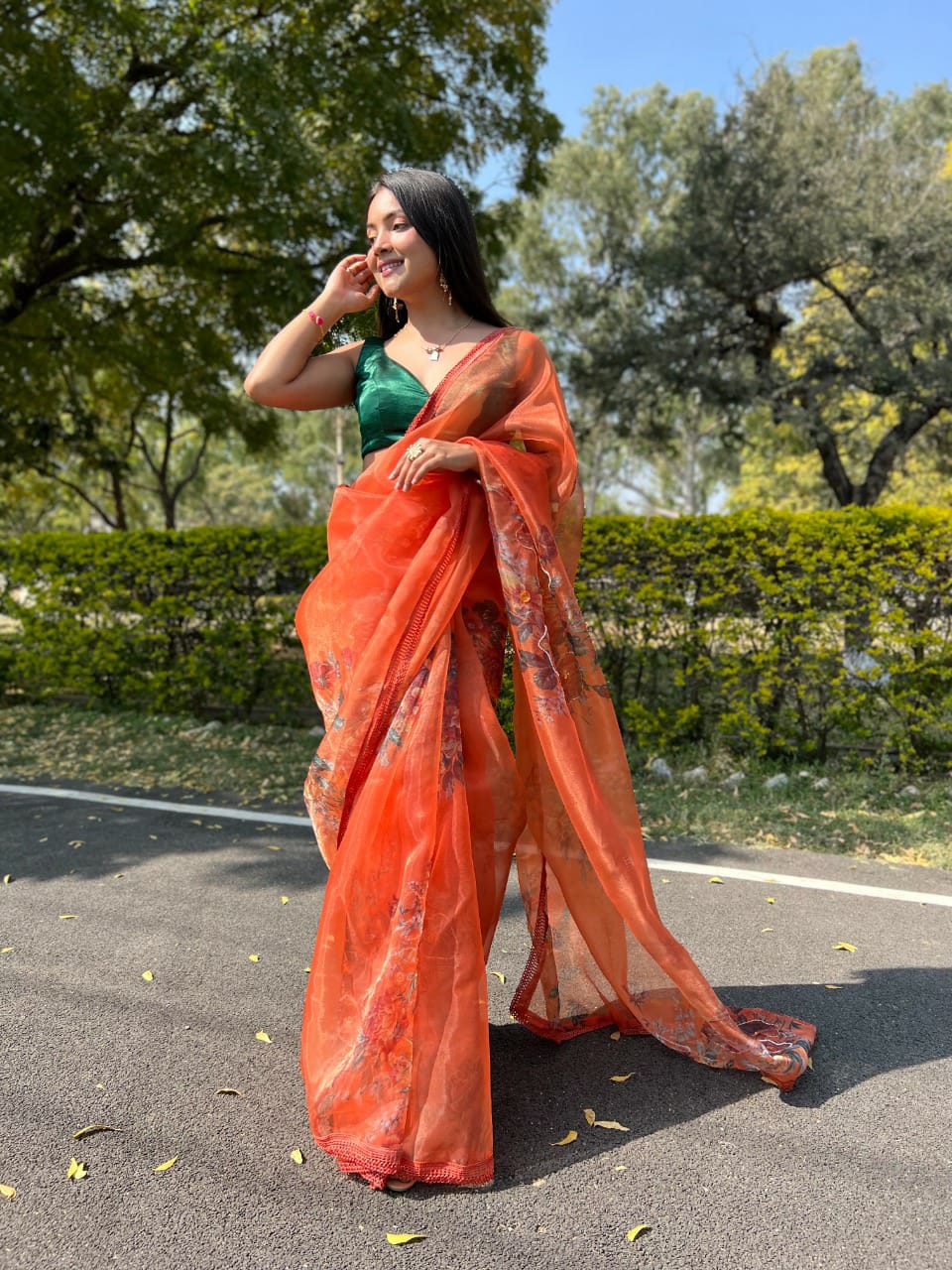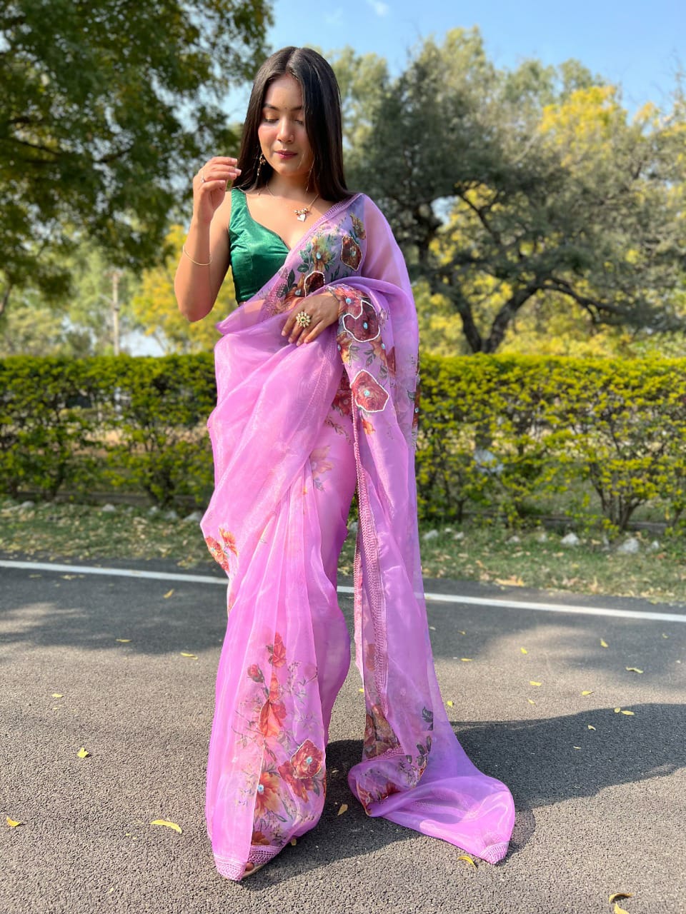 Firozi Designer Organza Saree Single Avilable Wholesaler Surat Gujarat