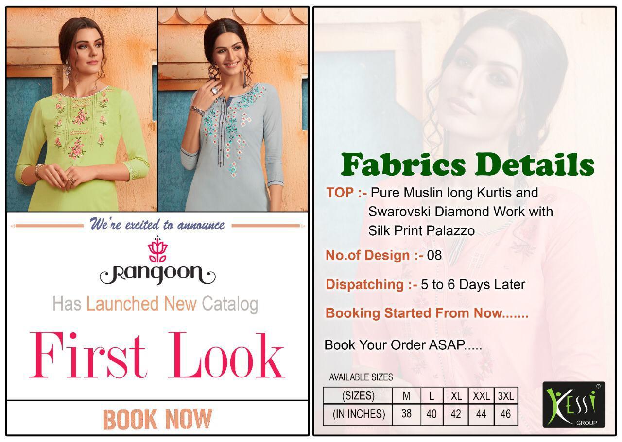Buy Online First Look By Rangoon Kurtis With Plazzo Wholesale Supplier Surat 8 Pcs of Full Catalogue at Wholesale Price. Looking for First Look By Rangoon Kurtis With Plazzo Wholesale Supplier Surat Full Catalouge at Best Price? Buy Now First Look By Rangoon Kurtis With Plazzo Wholesale Supplier Surat at Wholesale Rate of Rs 7192 with Total 8 Pcs from authroized dealer and supplier of Brand. Cost of Each piece is just only Rs 899 which is very low and affordable price to resale the product in your retail store ,This is Surat based Wholesale Supplier & Dealer of Brand. Click on Brand name to Know more about Brand's products.Call or Whatsapp on 9898838984 for booking or enquiry