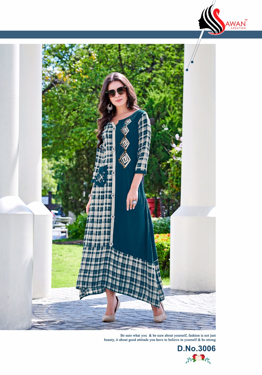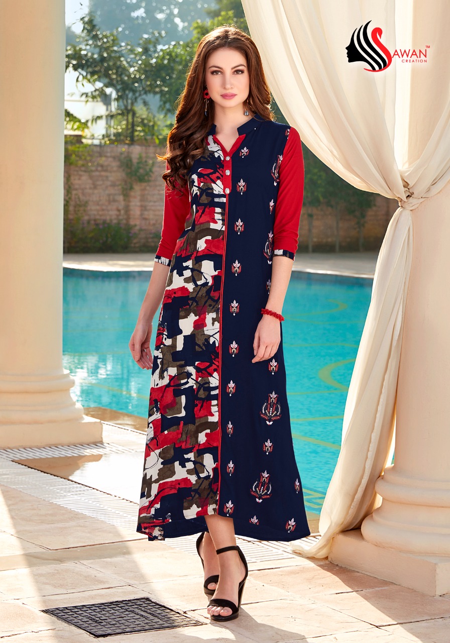 Buy Online Fiza Vol 3 By Sawan Creation Fancy Heavy Reyon Kurti Catlog Wholesale Dealer Surat 10 Pcs of Full Catalogue at Wholesale Price. Looking for Fiza Vol 3 By Sawan Creation Fancy Heavy Reyon Kurti Catlog Wholesale Dealer Surat Full Catalouge at Best Price? Buy Now Fiza Vol 3 By Sawan Creation Fancy Heavy Reyon Kurti Catlog Wholesale Dealer Surat at Wholesale Rate of Rs 5450 with Total 10 Pcs from authroized dealer and supplier of SAWAN CREATION Brand. Cost of Each piece is just only Rs 545 which is very low and affordable price to resale the product in your retail store ,This is Surat based Wholesale Supplier & Dealer of SAWAN CREATION Brand. Click on Brand name to Know more about SAWAN CREATION Brand's products.Call or Whatsapp on 9898838984 for booking or enquiry