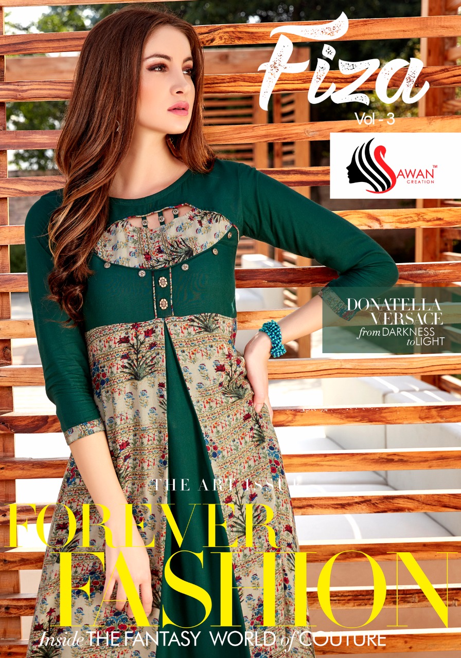 Fiza Vol 3 By Sawan Creation Fancy Heavy Reyon Kurti Catlog Wholesale Dealer Surat