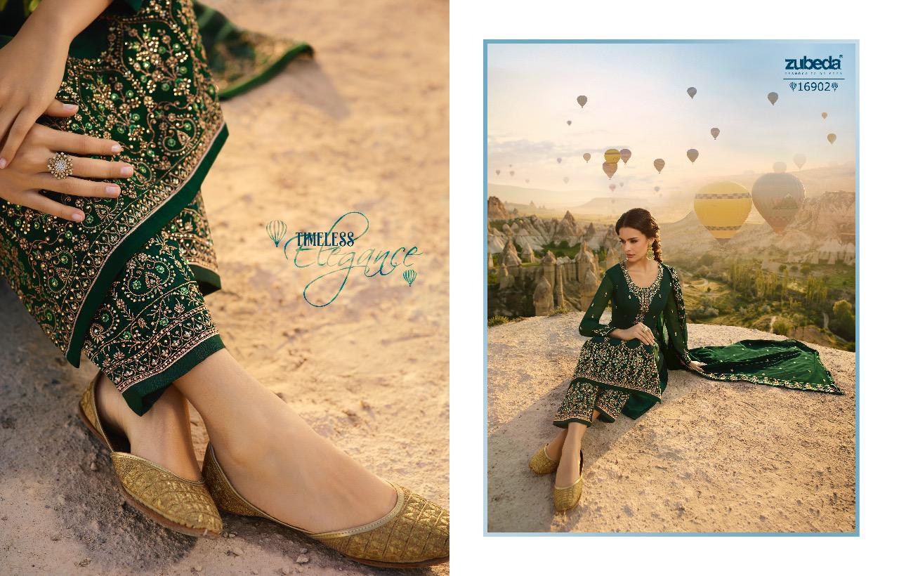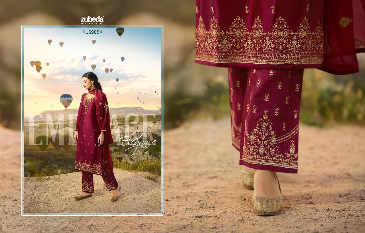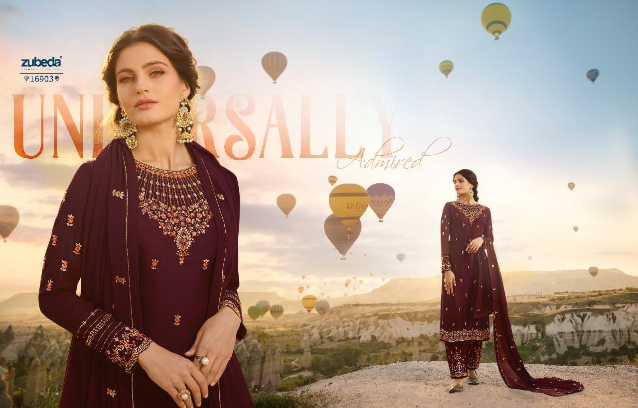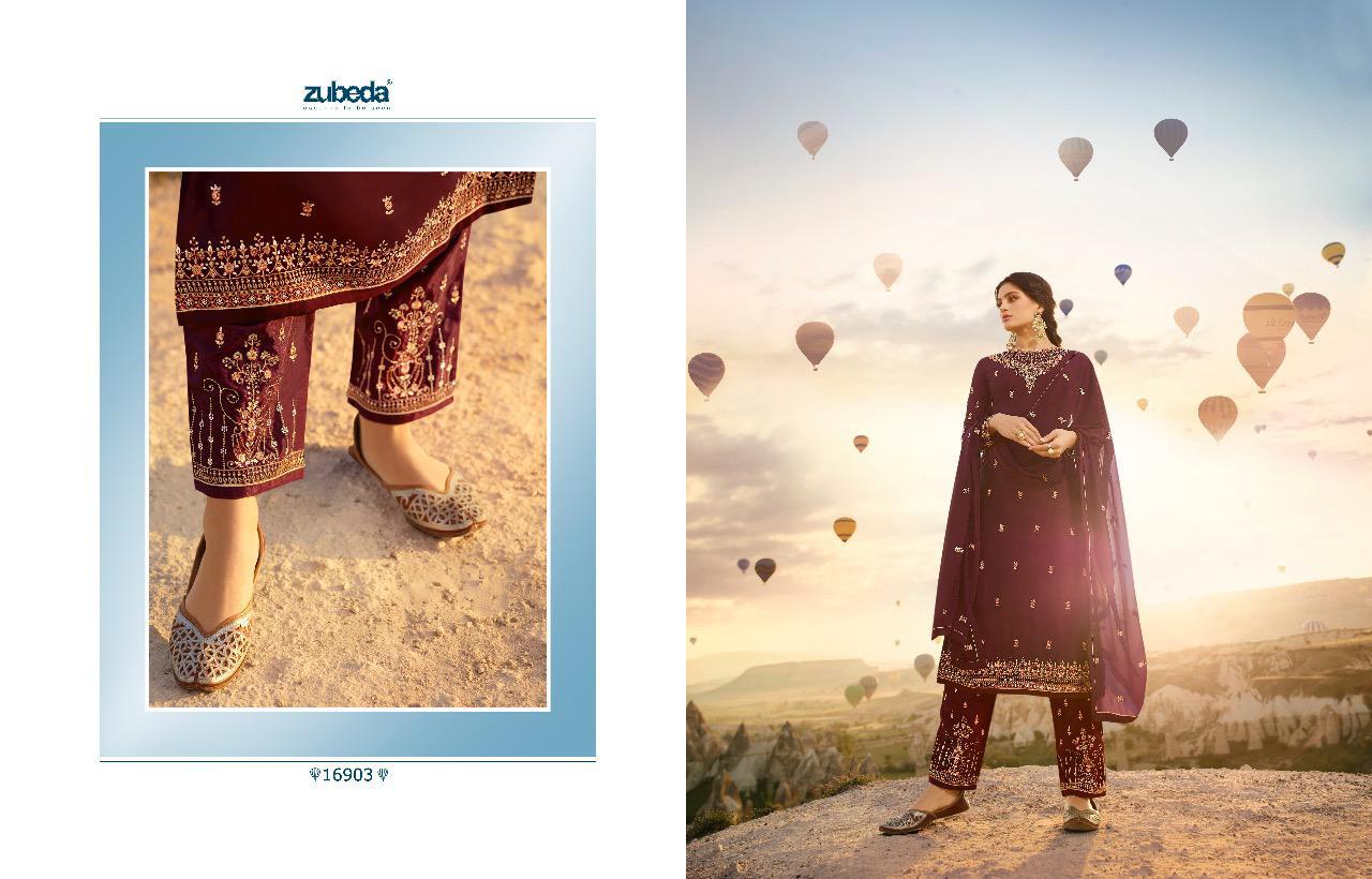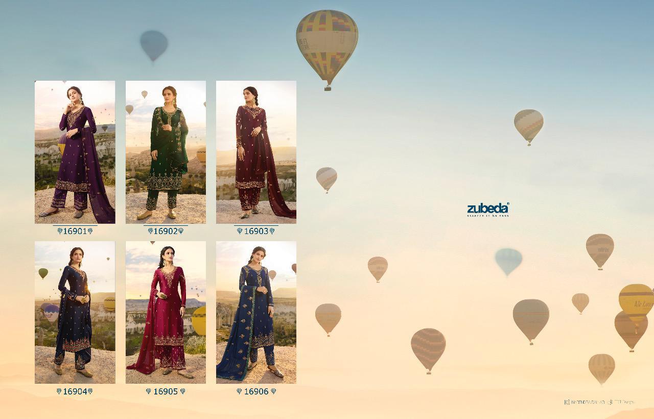 Fizaa by zubeda series 16901 to 16906 satin georgette embroidered designer party wear suits wholesale supplier nd trader Gujarat |