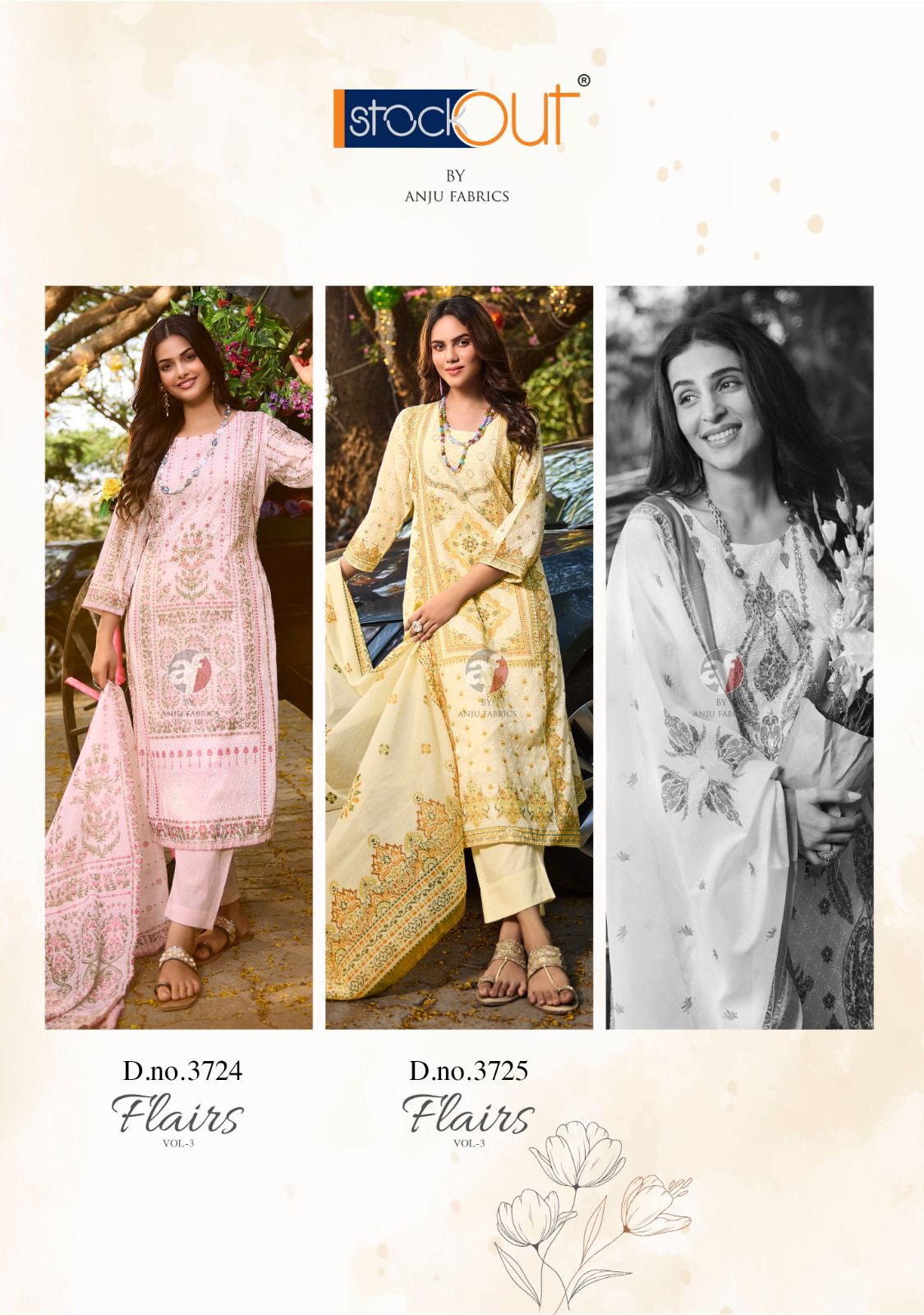 Flairs Vol 3 By Anju Fabrics Kurti Bottom Duppata Collection Manufacturer Surat