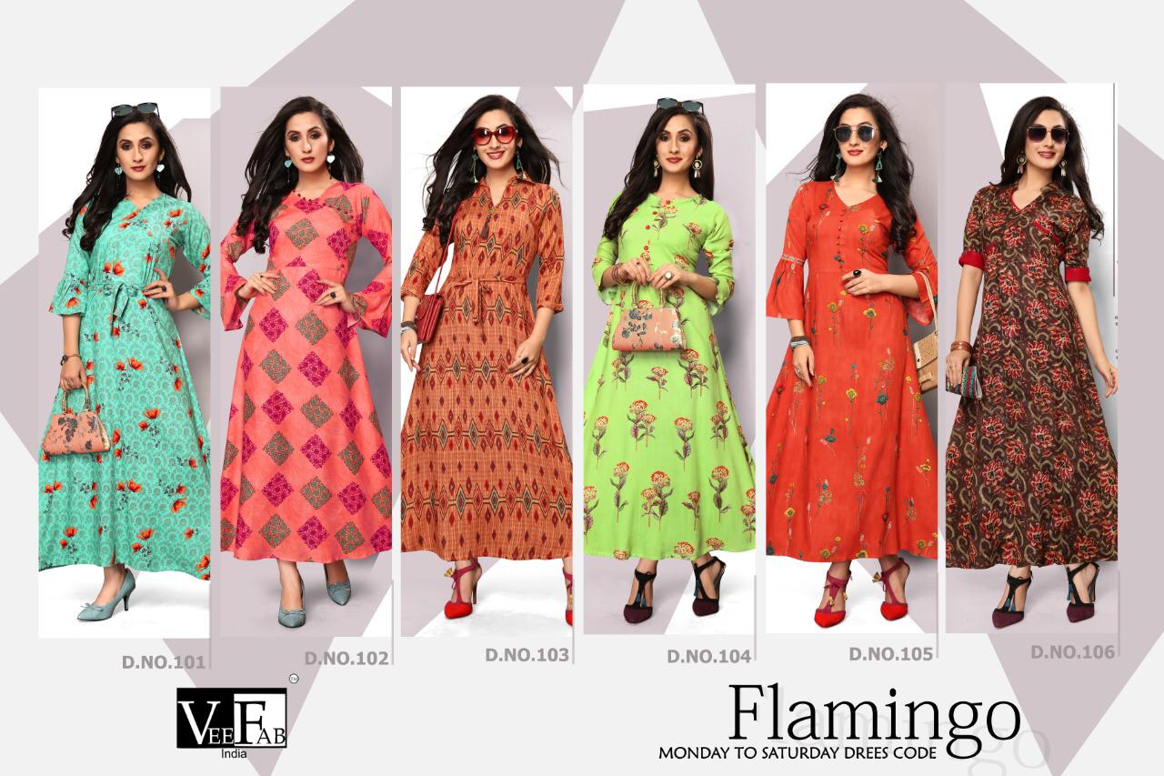 Buy Online Flamingo By Vee Fab India Reyon Kurtis Collection Supplier India 6 Pcs of Full Catalogue at Wholesale Price. Looking for Flamingo By Vee Fab India Reyon Kurtis Collection Supplier India Full Catalouge at Best Price? Buy Now Flamingo By Vee Fab India Reyon Kurtis Collection Supplier India at Wholesale Rate of Rs 3270 with Total 6 Pcs from authroized dealer and supplier of Veefab india Brand. Cost of Each piece is just only Rs 545 which is very low and affordable price to resale the product in your retail store ,This is Surat based Wholesale Supplier & Dealer of Veefab india Brand. Click on Brand name to Know more about Veefab india Brand's products.Call or Whatsapp on 9898838984 for booking or enquiry