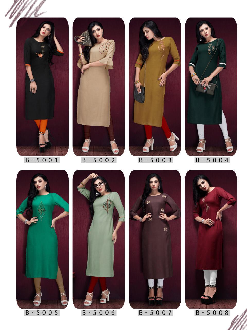 ?RIJIYA TRENDS (RT) ? Catalogue Name: "FLASH" Designs : 8 pcs. Fabric : Premium quality 14 kg Rayon Slub Pattern : Hand work Length : 46"+ Size : M(38), L(40), XL(42), XXL(44), XXXL(46) Rate : ? 499/- + [5%] GST Set To Set . ?Book your order now..... Dispatch: 21/12/2019 |
