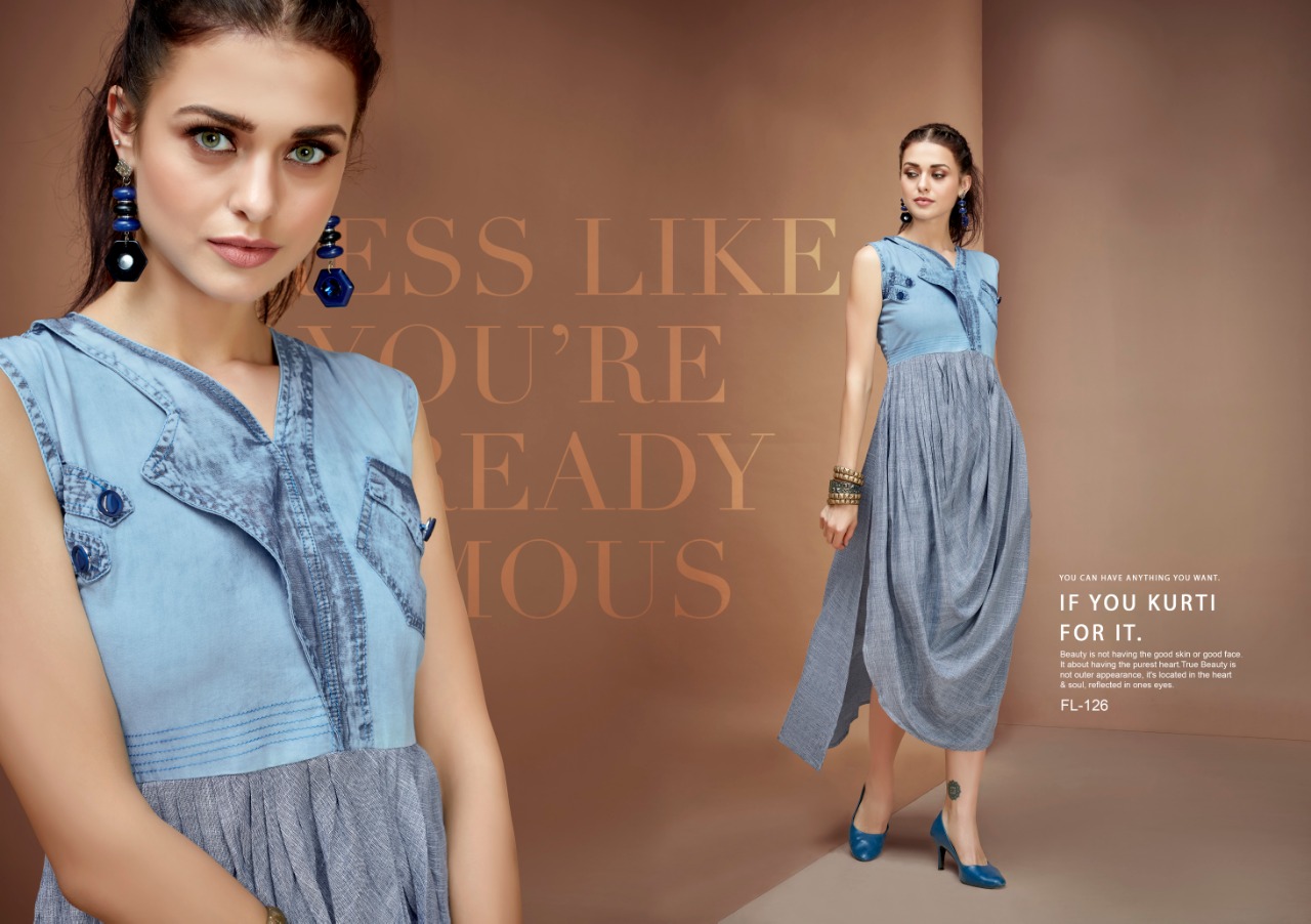 Flashy Vol 3 By Diva 120 Series Fancy Deaigner Pure Cotton Denim Kurti Catlog Wholesaler Surat