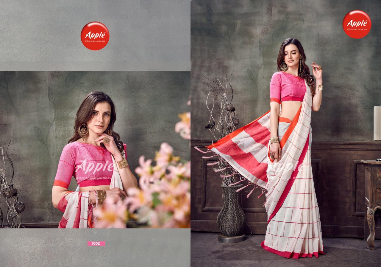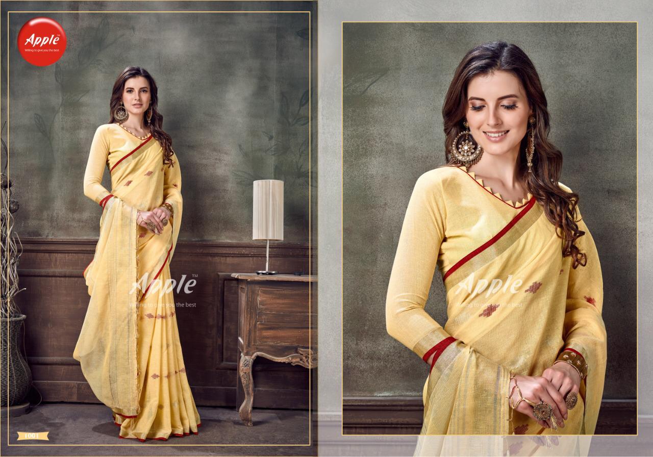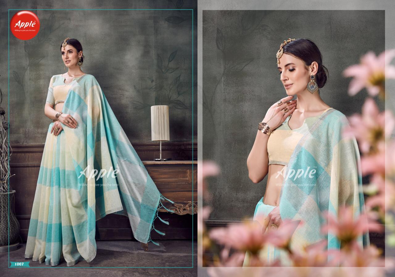 Buy Online Flax By Apple 1001 Series Fancy Premium Linen Silk Printed Saree Collection Wholesaler Surat 8 Pcs of Full Catalogue at Wholesale Price. Looking for Flax By Apple 1001 Series Fancy Premium Linen Silk Printed Saree Collection Wholesaler Surat Full Catalouge at Best Price? Buy Now Flax By Apple 1001 Series Fancy Premium Linen Silk Printed Saree Collection Wholesaler Surat at Wholesale Rate of Rs 5560 with Total 8 Pcs from authroized dealer and supplier of APPLE Brand. Cost of Each piece is just only Rs 695 which is very low and affordable price to resale the product in your retail store ,This is Surat based Wholesale Supplier & Dealer of APPLE Brand. Click on Brand name to Know more about APPLE Brand's products.Call or Whatsapp on 9898838984 for booking or enquiry