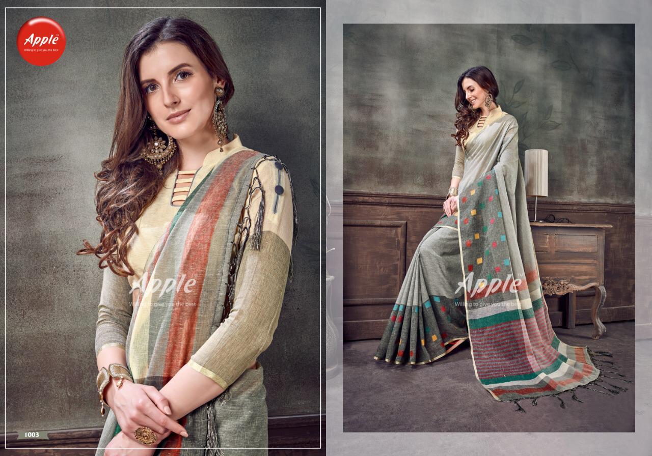 Flax By Apple 1001 Series Fancy Premium Linen Silk Printed Saree Collection Wholesaler Surat