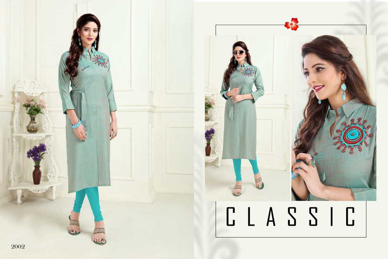 Flora By Amber 2001 Ssries Fancy Reyon Kurti Catlog Wholesale Dealer Surat
