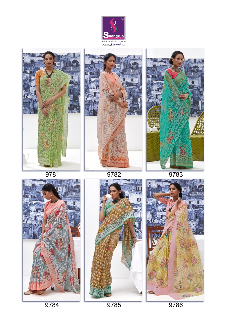 Buy Online Floral Brasso By Shangrila Sarees Wholesale Supplier And Dealer Gujarat 12 Pcs of Full Catalogue at Wholesale Price. Looking for Floral Brasso By Shangrila Sarees Wholesale Supplier And Dealer Gujarat Full Catalouge at Best Price? Buy Now Floral Brasso By Shangrila Sarees Wholesale Supplier And Dealer Gujarat at Wholesale Rate of Rs 9540 with Total 12 Pcs from authroized dealer and supplier of SHANGRILA Brand. Cost of Each piece is just only Rs 795 which is very low and affordable price to resale the product in your retail store ,This is Surat based Wholesale Supplier & Dealer of SHANGRILA Brand. Click on Brand name to Know more about SHANGRILA Brand's products.Call or Whatsapp on 9898838984 for booking or enquiry