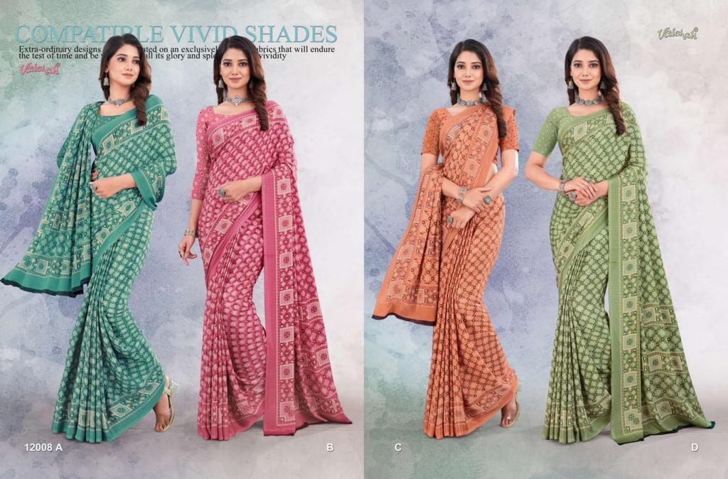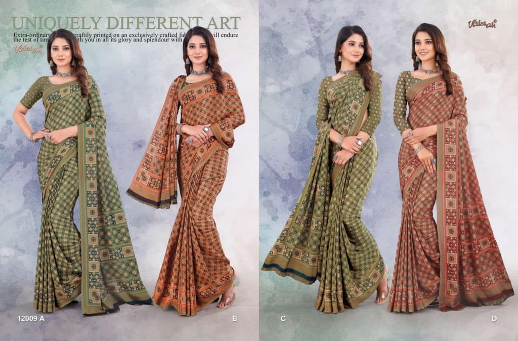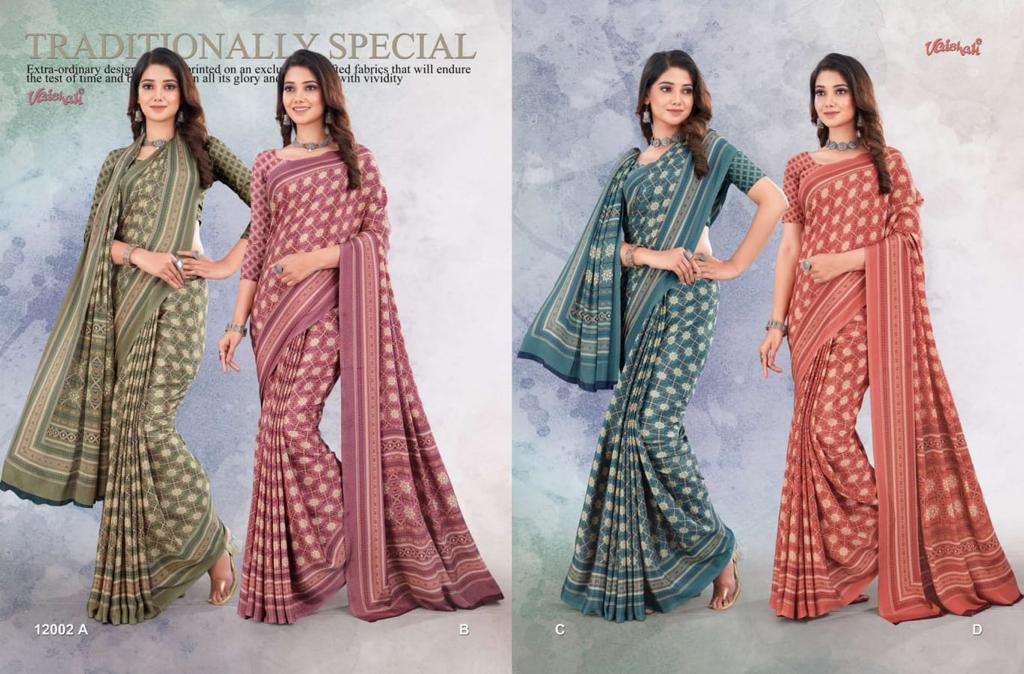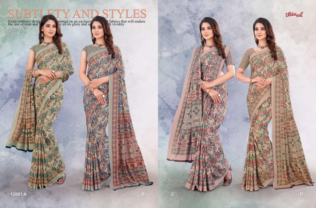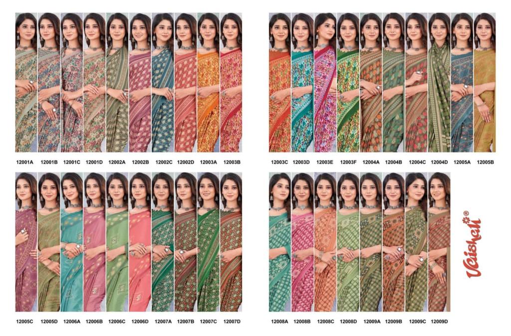 VAISHALI FASHION FABRICS CRAPE SILK (FLORENCE)NEW CATALOG LONCH PER DESIGN 4 COLOUR MATCHING 36 SAREE Rate - 618 per pcs Gst ship extra Single available 100+singl |