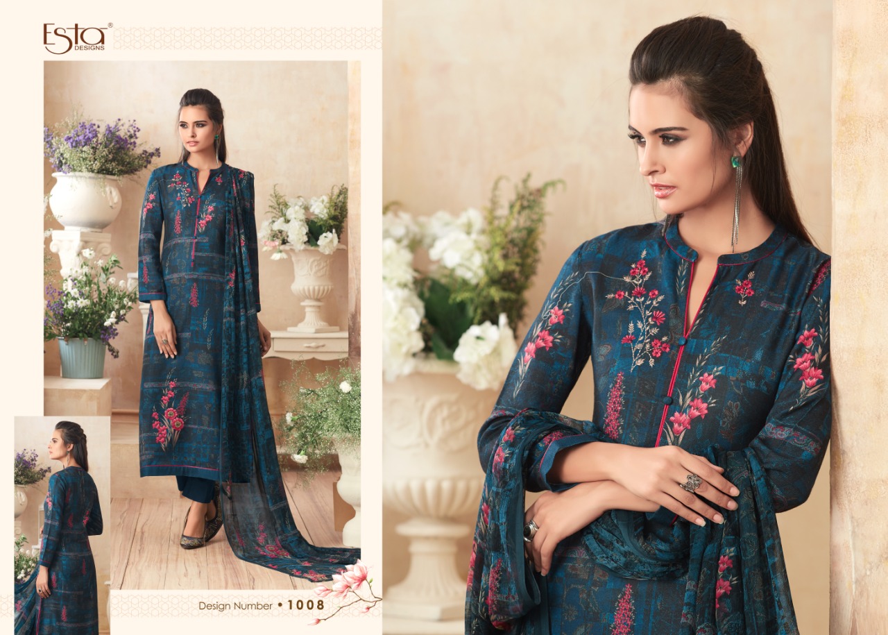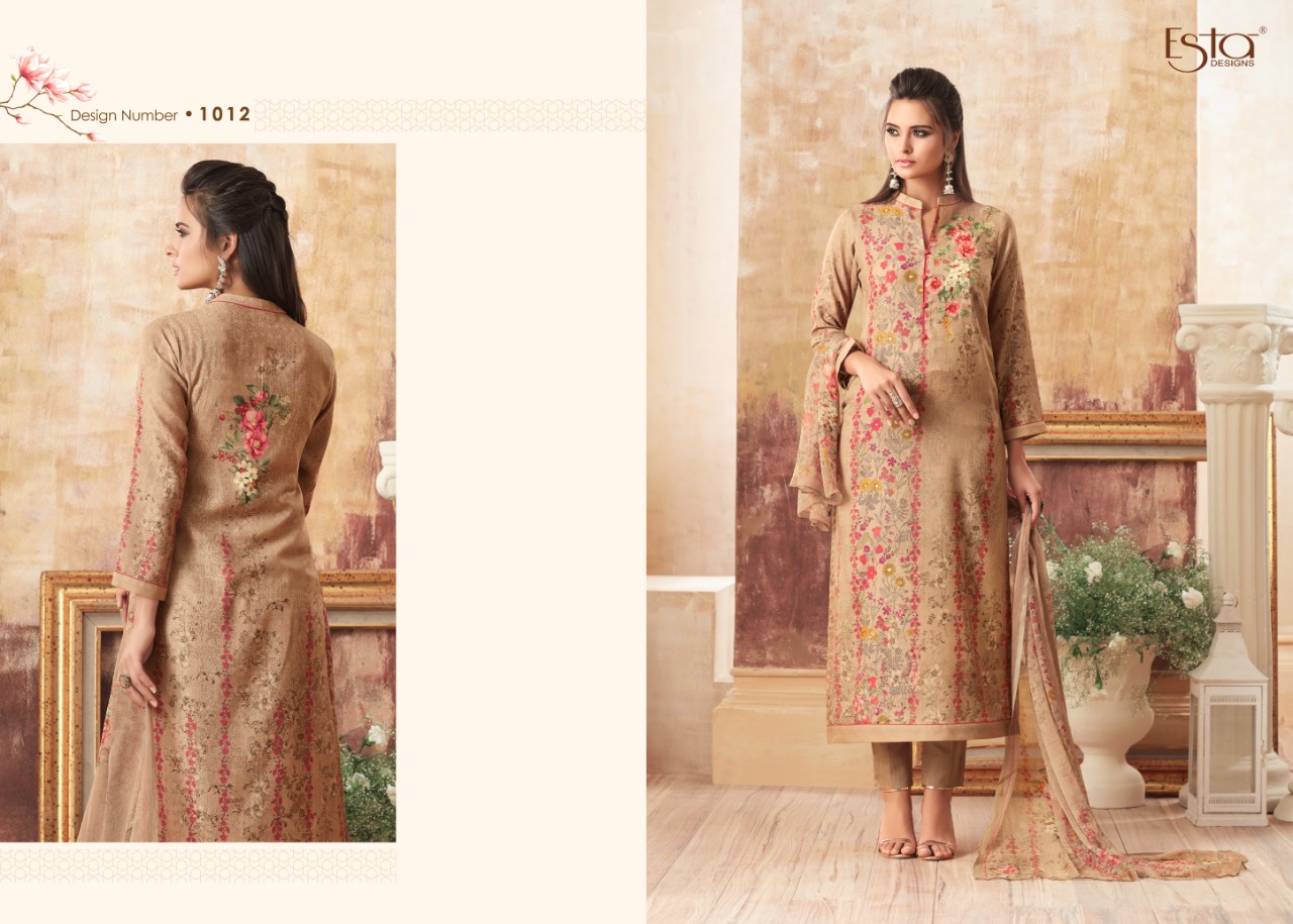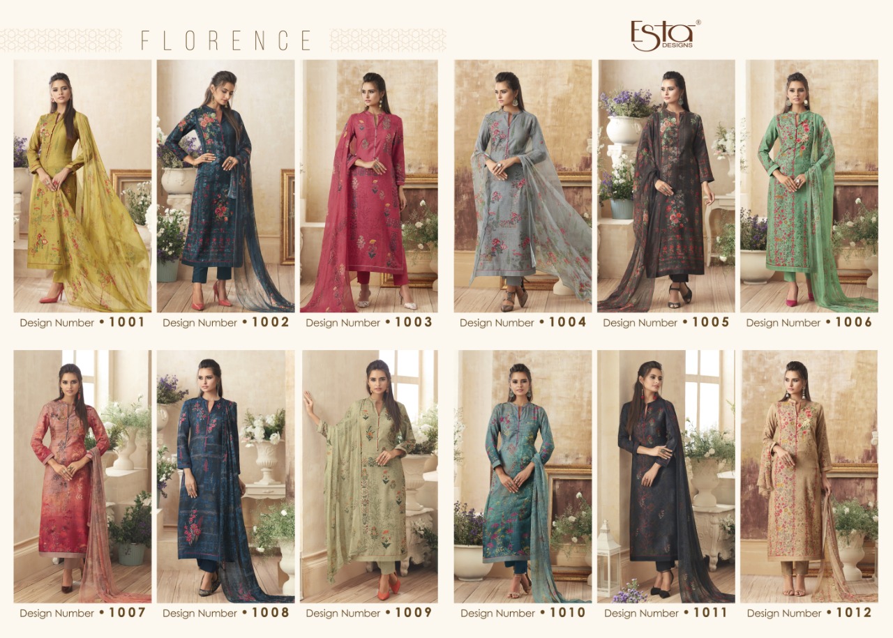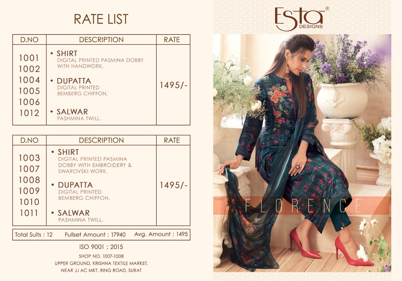 Florence By Esta Designs 1001 Series Designer Pashmina Dubby Printed Salwar Kameez Catlog Wholesaler Surat