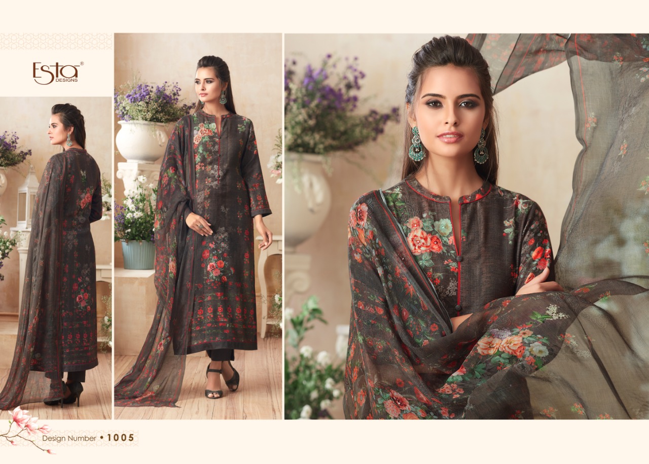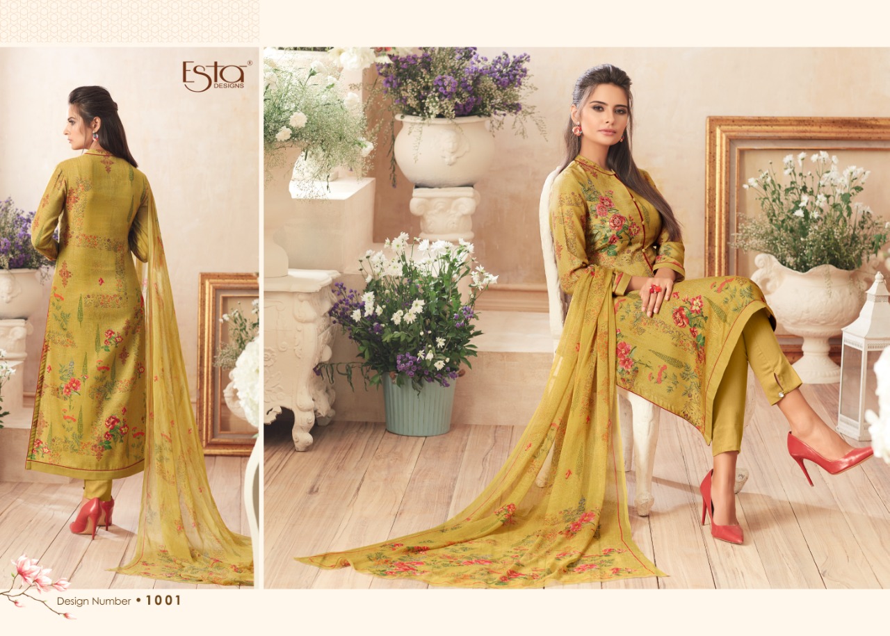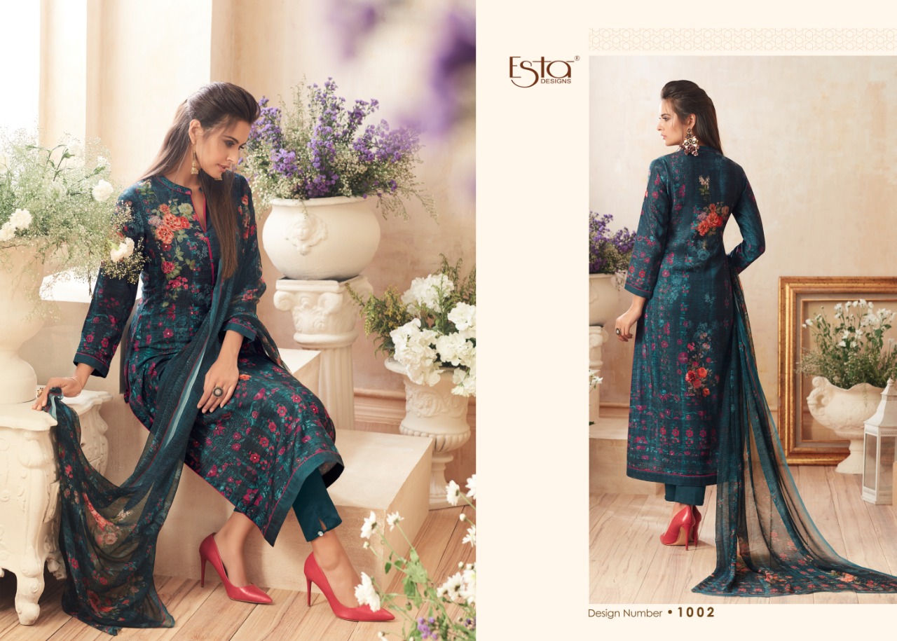 Florence By Esta Designs 1001 Series Designer Pashmina Dubby Printed Salwar Kameez Catlog Wholesaler Surat