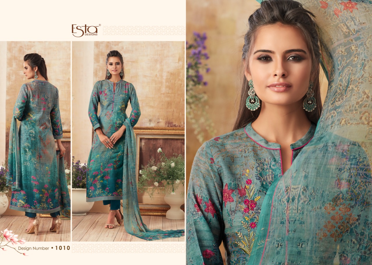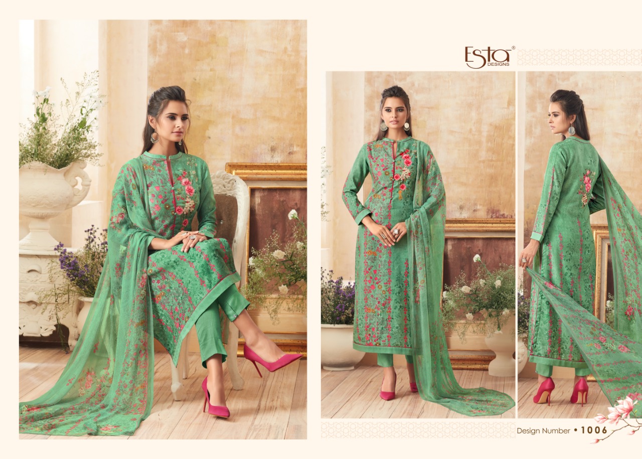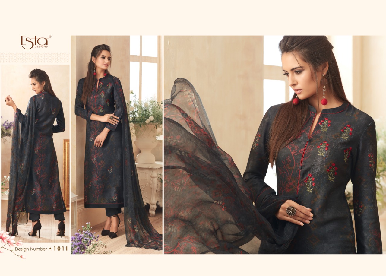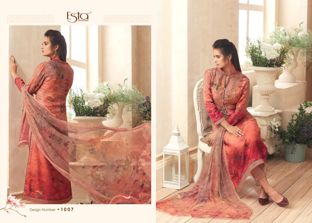 Florence By Esta Designs 1001 Series Designer Pashmina Dubby Printed Salwar Kameez Catlog Wholesaler Surat