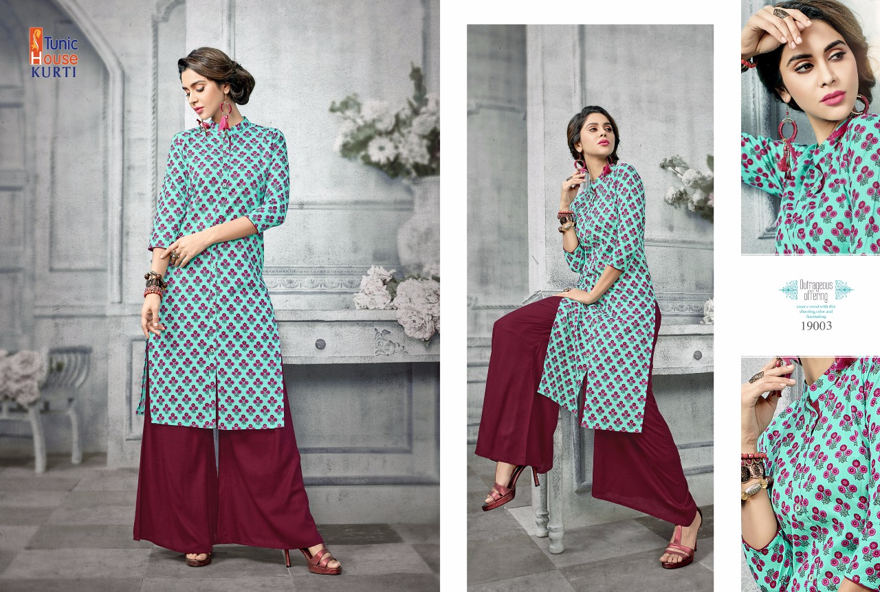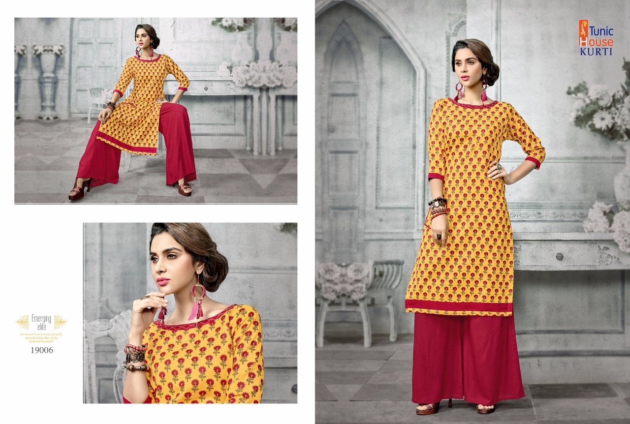 Buy Online Florenz By Tunic Cotton Printed Top With Plazzo Suits Wholesale Supplier And Dealer Surat 6 Pcs of Full Catalogue at Wholesale Price. Looking for Florenz By Tunic Cotton Printed Top With Plazzo Suits Wholesale Supplier And Dealer Surat Full Catalouge at Best Price? Buy Now Florenz By Tunic Cotton Printed Top With Plazzo Suits Wholesale Supplier And Dealer Surat at Wholesale Rate of Rs 4290 with Total 6 Pcs from authroized dealer and supplier of TUNIC HOUSE Brand. Cost of Each piece is just only Rs 715 which is very low and affordable price to resale the product in your retail store ,This is Surat based Wholesale Supplier & Dealer of TUNIC HOUSE Brand. Click on Brand name to Know more about TUNIC HOUSE Brand's products.Call or Whatsapp on 9898838984 for booking or enquiry