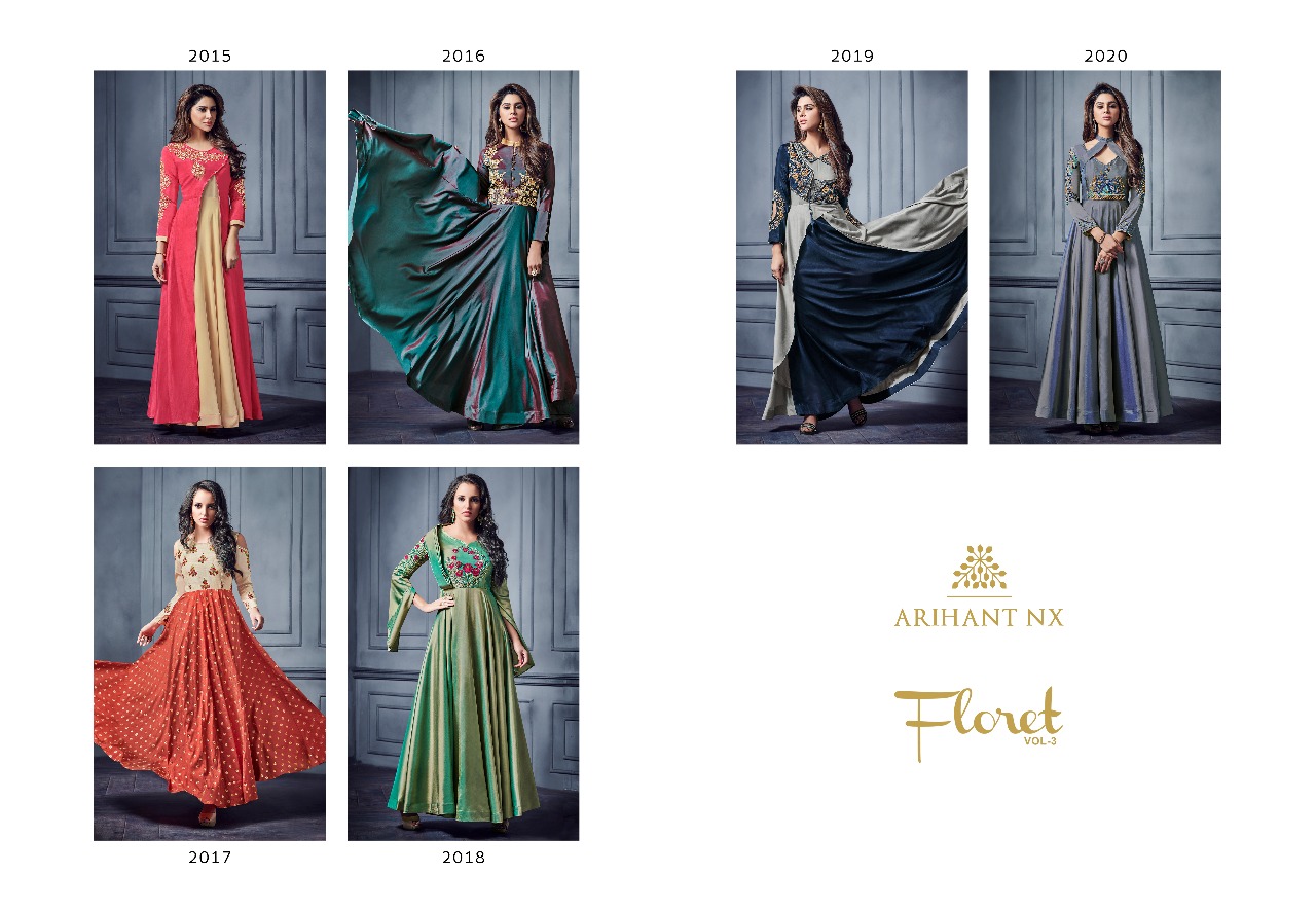 Floret Vol 3 By Arihant Nx Series 2015 To 2020 Silk Designer Ready To Wear Gowns Wholesale Supplier And Dealer Surat