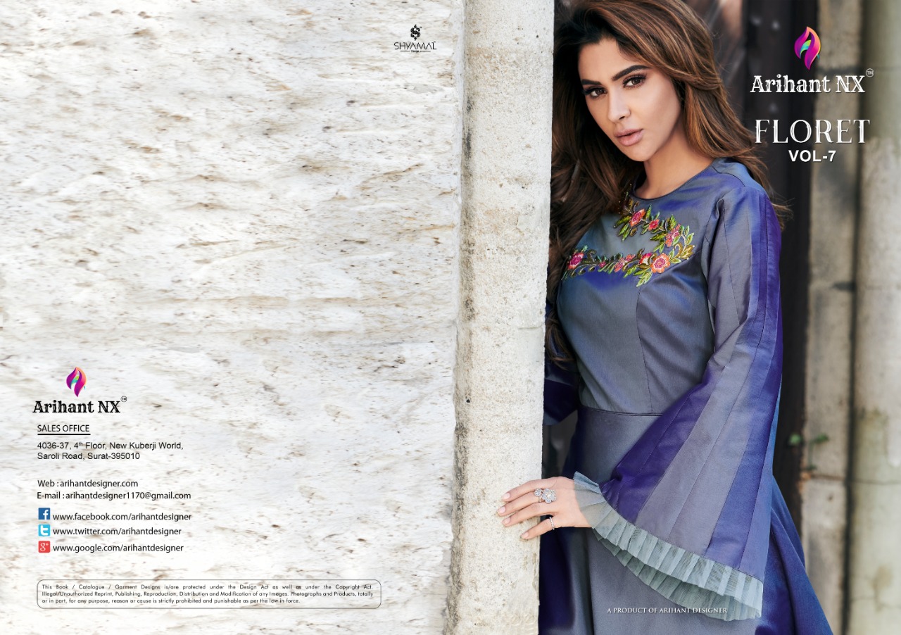 Buy Online Floret Vol 7 By Arihant Nx Series 2041 To 2046 Silk Designer Occasions Wear Gowns Wholesale Supplier Surat 6 Pcs of Full Catalogue at Wholesale Price. Looking for Floret Vol 7 By Arihant Nx Series 2041 To 2046 Silk Designer Occasions Wear Gowns Wholesale Supplier Surat Full Catalouge at Best Price? Buy Now Floret Vol 7 By Arihant Nx Series 2041 To 2046 Silk Designer Occasions Wear Gowns Wholesale Supplier Surat at Wholesale Rate of Rs 6270 with Total 6 Pcs from authroized dealer and supplier of ARIHANT NX Brand. Cost of Each piece is just only Rs 1045 which is very low and affordable price to resale the product in your retail store ,This is Surat based Wholesale Supplier & Dealer of ARIHANT NX Brand. Click on Brand name to Know more about ARIHANT NX Brand's products.Call or Whatsapp on 9898838984 for booking or enquiry
